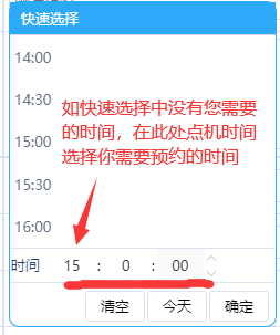 (四)选时间栏目,会出现时间选择弹窗,底部的时间可以手工输入或鼠标选择(如下图)。