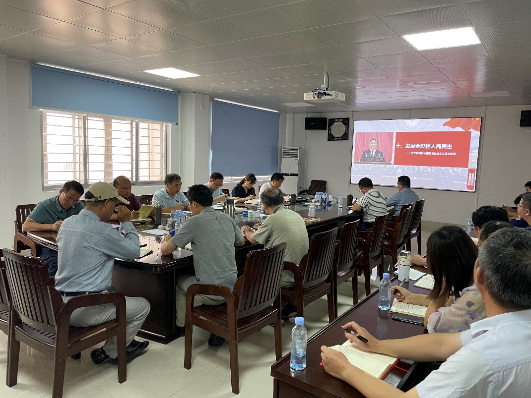 5月22日下午,太阳集团tyc138主题教育读书班开展第七次集中学习,太阳集团tyc138副处长严壮锋领学《习近平新时代中国特色社会主义思想学习纲要》,读书班全体成员及太阳集团tyc138第一党支部全体党员参加。