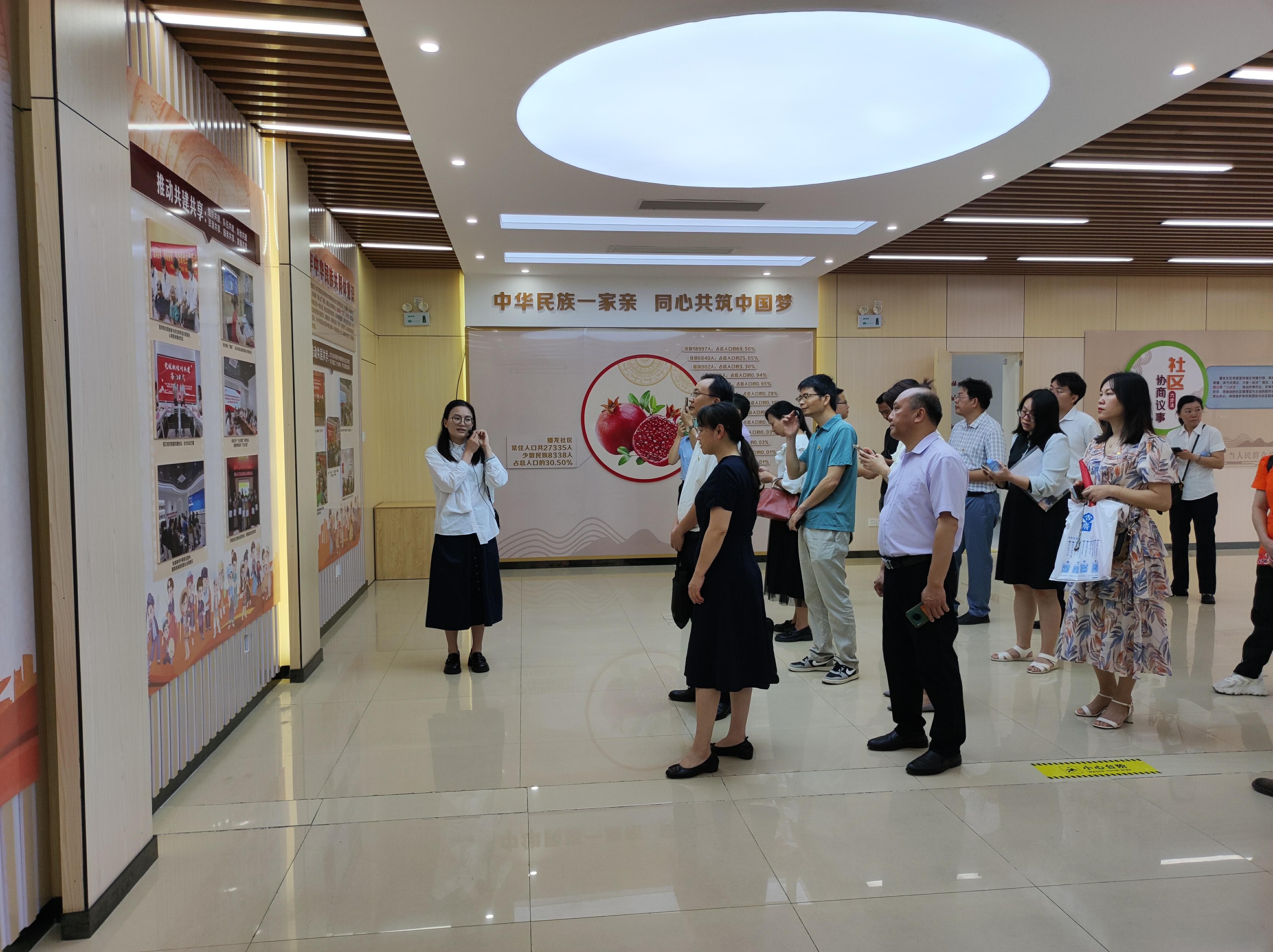 在蟠龙社区党群服务中心,讲解员详细讲解了蟠龙社区社会治理工作总体情况,向大家介绍社区党建+网格的治理模式、“136”工作机制,为各族居民创造共居共学、共建共享、共事共乐的六共社会条件等具体情况,太阳集团tyc138一行实地参观了二楼舞蹈室、民族研学区、亲子早教、公益课堂、图书阅览、书画交流等文体活动区域。