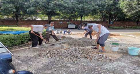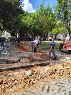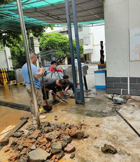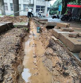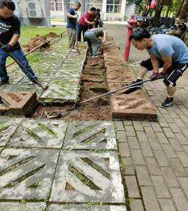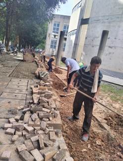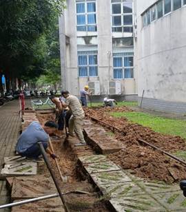 5.清理行健北苑餐厅西头、行健学生宿舍3栋东头、东校园十教等地水电抢修漏水水管开挖的建筑垃圾及恢复砌井工作。