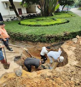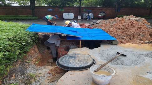 1.开挖更换西校园学生15栋、十教南大门、西6A栋、东校园西区13栋等地总排水管、维修校医院三楼男厕总排污管、校办西头寻化粪池并砌井。