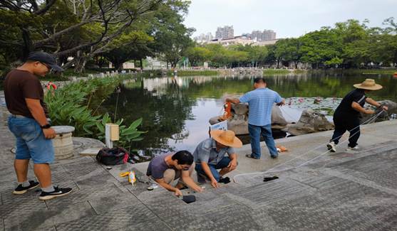 进行青苔防治及打捞,并防控湖体罗非鱼等杂鱼过多生长,提高水质透明度;持续对各湖睡莲进行施肥、病虫害治理等养护作业;做好观赏鱼苗投放、水草补种、景观池打扫、清理福寿螺、污水入湖治理等湖泊管养工作,同时加强各湖驳岸绿化工作,逐步完善水生植物+水生动物+微生物群落一体化,构建生物多样性景观湖泊,打造一湖一景,做到岸边有花,水中有鱼的良好生态校园环境。
