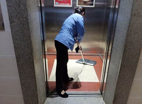 9月份,持续做好教职工宿舍楼的日常清洁清扫工作。对228栋住宅区楼层的公共区域进行逐层清理,做好楼栋内地面、墙面、楼梯扶手、电梯内及东高地下停车场等区域的卫生整理。对楼道内、水电井房乱堆乱放的杂物进行巡查清理,保持消防通道畅通,本月清理住宅区楼道杂物约286处。