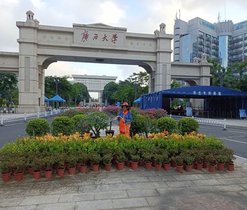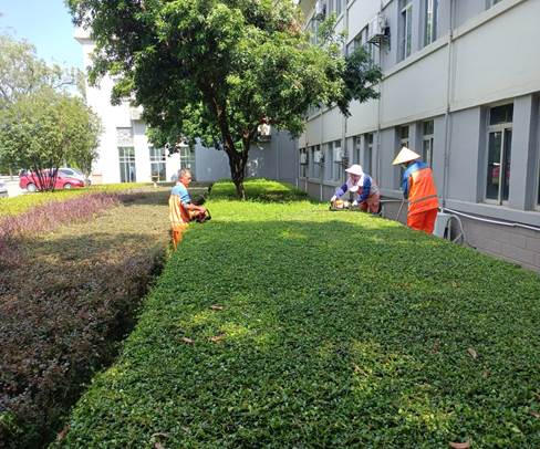 9月份,校园绿化养护工作主要对校内绿地草坪进行修整及落叶杂草清理;对教学区域、办公区域等植物进行浇灌、施肥、病虫害防治;对校内各区域树木危枯枝、寄生树进行修剪及树木绿植菟丝子清除;对校内各区域危树死树进行巡查及处理等作业,并做好校园各区域绿地盆栽淋水等工作。