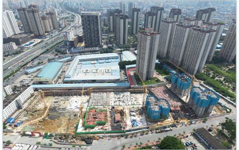 主体结构:(1)地下室主体浇筑已完成17255㎡,完成工程量的40%。(2)1#楼完成至9层梁板,其中本月完成5层墙柱至9层梁板;2#楼完成至9层梁板,其中本月完成6层墙柱至9层梁板;3#楼完成至7层梁板,其中本月完成3层墙柱至7层梁板;3A#楼完成至地下一层梁板,其中本月完成基础底板至地下一层梁板;5#楼完成全部地下室部分,其中本月完成地下二层墙柱至二层梁板;6#、7#楼完成桩基施工。