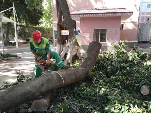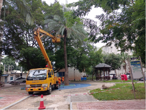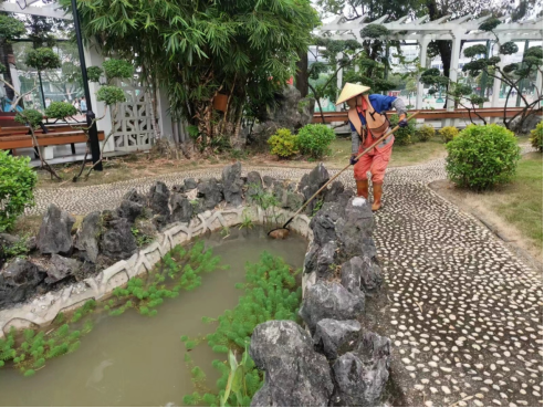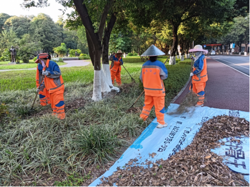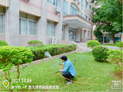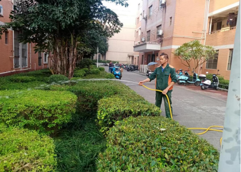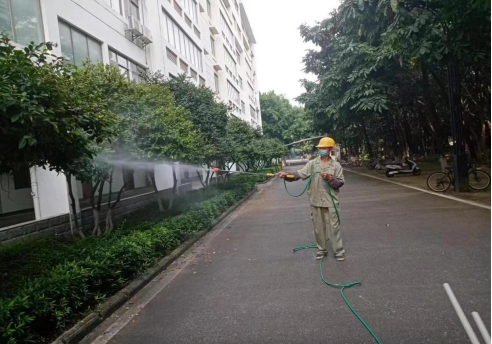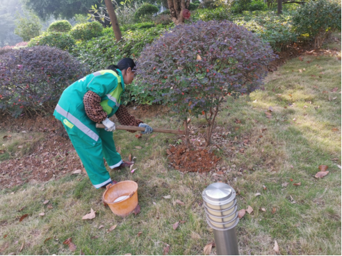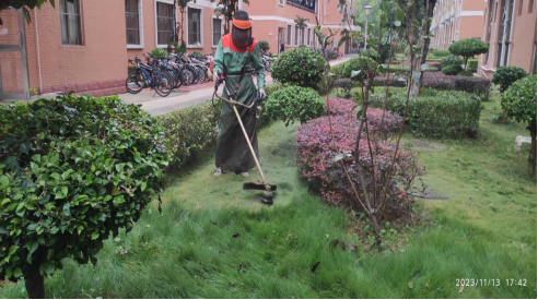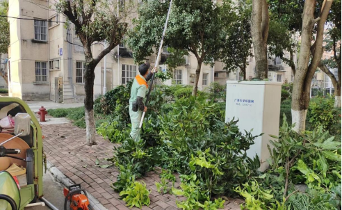 1.绿化日常修剪养护工作。本月完成学生公寓园区绿化除杂草工作约8000平方米,修剪绿化带面积约6000平方米,绿化带消杀面积约8.3万平方米,冲洗路面约5000平方米。