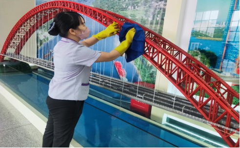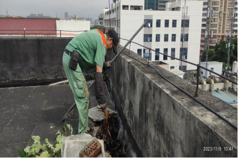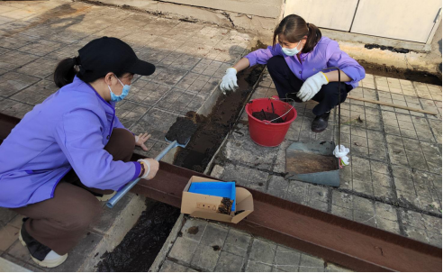 1.正常开展公共楼宇日常保洁服务工作。清理 36 栋公共楼宇外围排水设施内杂物及杂草 137 次;清理 34 栋楼宇天台的排水设施内淤泥及杂草 142 次;重点楼宇卫生保障 14 次,重要会议保障 12 次。
