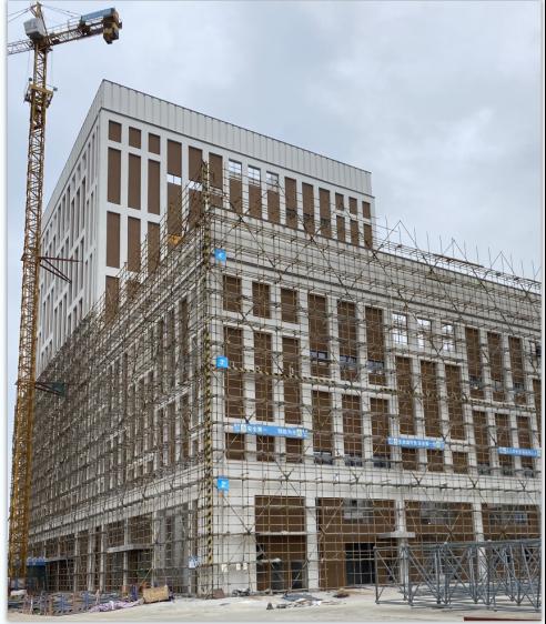 项目进度:内墙腻子、涂料已完成;外墙腻子、涂料已完成;外架拆除至四层。水电等完成80%;消防工程完成505。钢结构构件已加工完成,拼装完成80%。楼梯、室内地面完成80%。