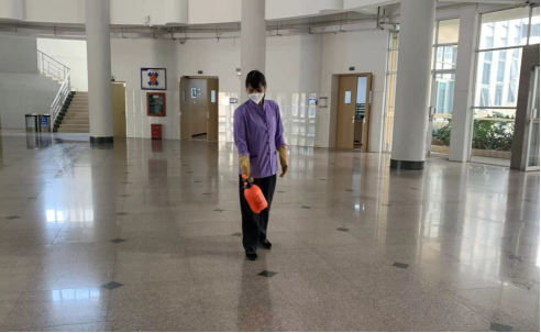 2.对公共教学楼宇的楼梯、走廊、门把手、课桌椅、水龙头、楼梯扶手、电梯间及按钮等高频接触表面进行重点杀菌消毒 3746 次。