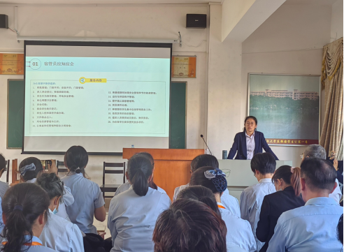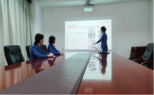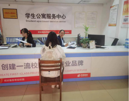 工作人员向宿舍管理体验岗同学讲解作业流程