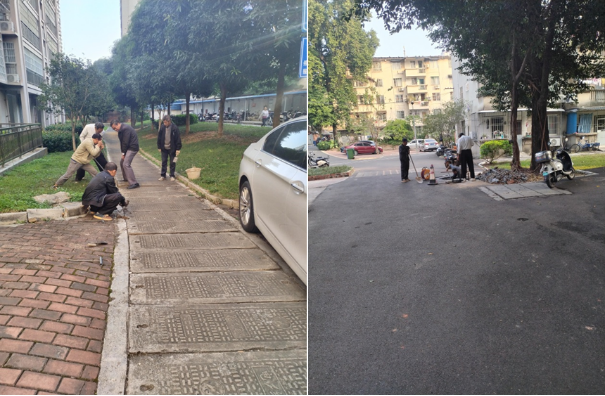 3.学生公寓工作人员在园区内进行日常巡查工作,发现问题及时督促物业进行整改,附整改前后的对比图。