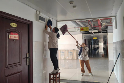 认真做好学生公寓园区内各种设备设施的保洁维护工作,擦拭学生公寓园区内472个生活设施(其中公共长椅102张,乒乓球桌152张,晾衣架 134 个、健身器材84个)和33间自习室。从2023年11月23日起每日检测园区热水机组温度并在太阳集团tyc138网站公布。