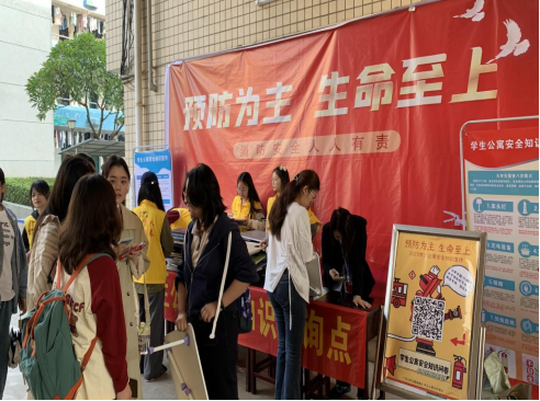 4.安全宣传活动。11月21日下午,学生公寓西7-15园区组织开展学生和工作人员消防演练活动。本次参加演练共约200多人,活动内容包括消防安全知识宣讲、宿舍应急疏散、工作人员讲解基本救护理念、心肺复苏的步骤以及AED除颤仪的使用方法等。本次参与消防演练的学生有新闻与传播学院,劳动教育实践体验岗部分学生、公寓服务管理岗、水电、土建维修管理岗、水电运行管理岗以及负责学生公寓管理的丹田物业公司员工等。通过此次紧急疏散演练,针对学生在教室、宿舍内突发火警、火灾的紧急情况,让学生熟悉逃生路线、学到安全防护知识,达到有事不慌、积极应对、学会自我保护,同时提高宿舍管理人员处理突发事件的能力,能有序、迅速的引导学生安全疏散。“预防为主,生命至上”,筑牢学生及教师员工“防火墙”,为创造安全和谐的教学环境打下坚实的基础。