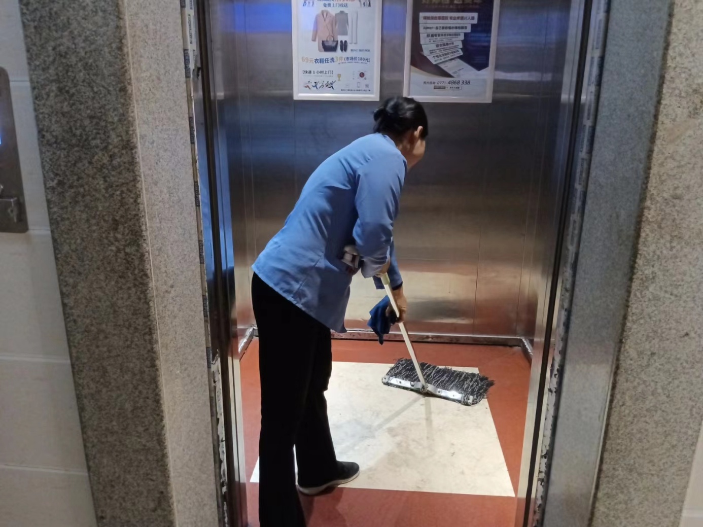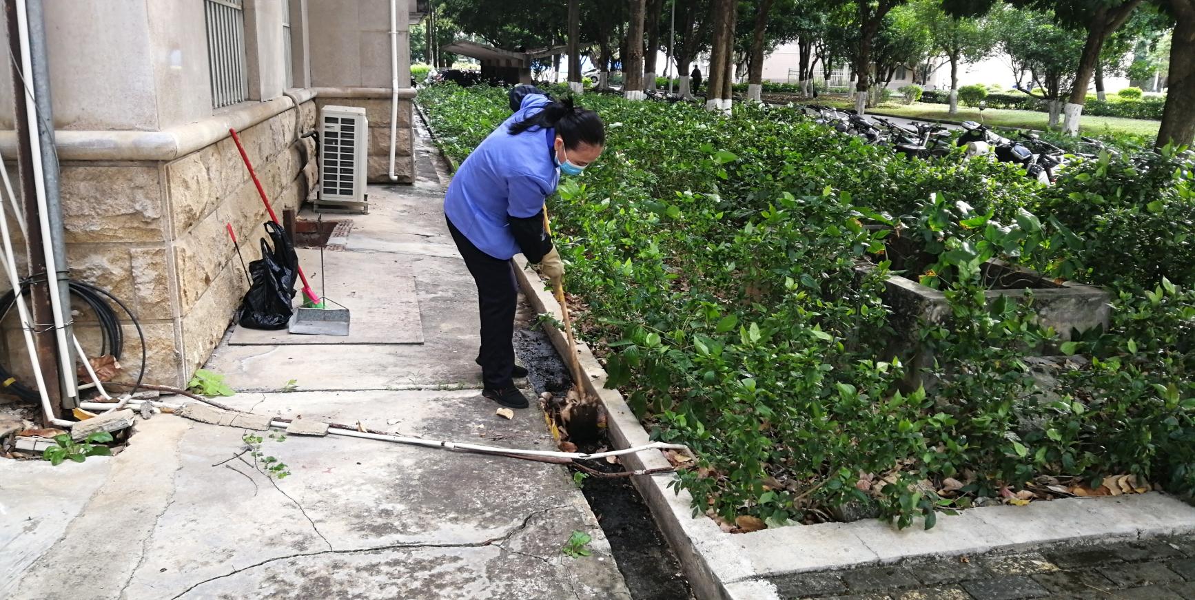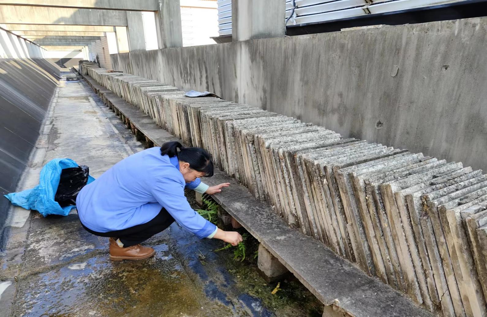 1.正常开展公共楼宇日常保洁服务工作。清理 39 栋公共楼宇外围排水设施内杂物及杂草 139 次;清理 32 栋楼宇天台的排水设施内淤泥及杂草 137 次;重点楼宇卫生保障 10 次,重要会议保障 25 次。