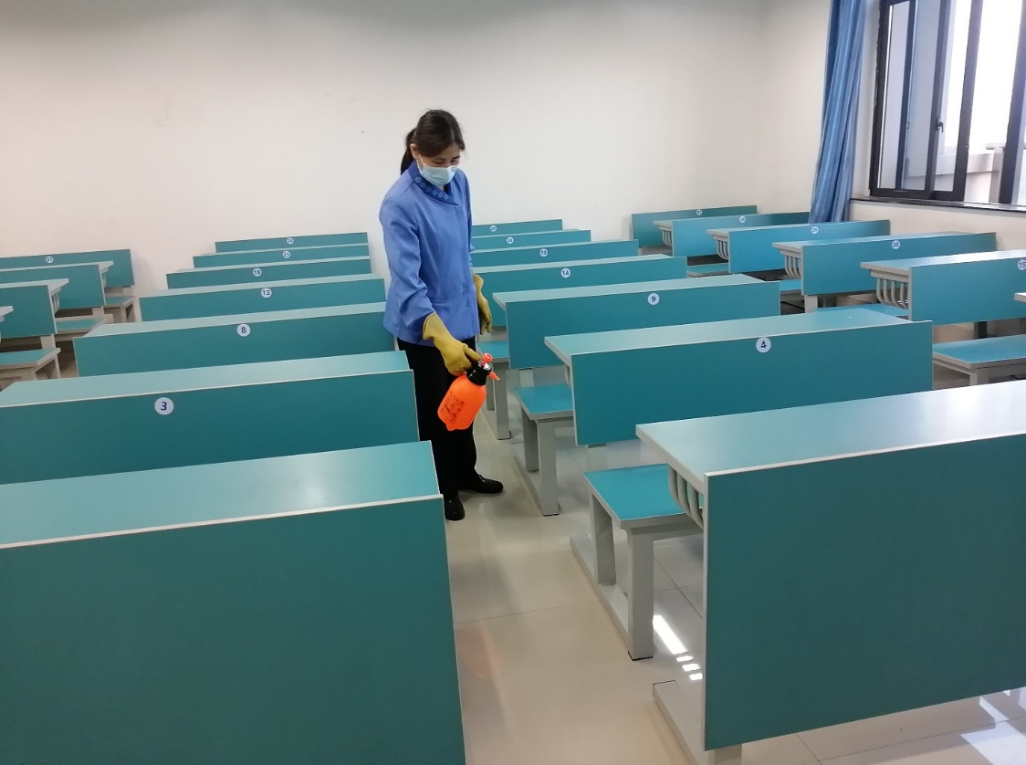 2.对公共教学楼宇的楼梯、走廊、门把手、课桌椅、水龙头、楼梯扶手、电梯间及按钮等高频接触表面进行重点杀菌消毒 3754 次。