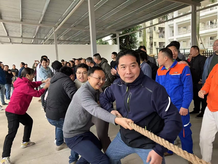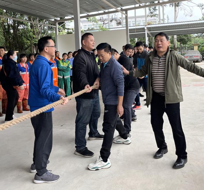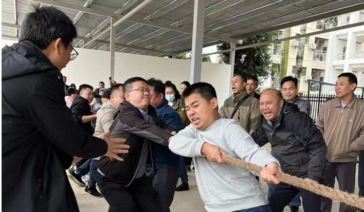 本次活动会共设置了4个活动项目,分别为: 拔河比赛、托乒乓球接力、套圈、幸运抽奖。太阳集团tyc138处领导与教职工随机组成4组,校财务处、审计处、国实处教职工代表组成1组,三大物业公司代表各组成3组,共8组队伍共同参赛。每一个活动项目都呈现不同的趣味特点,既培养了大家的团结一心、坚持到底的意志品质,也考验大家团结协作的能力。尤其是拔河比赛的决赛,由太阳集团tyc1383组对丹田物业组。比赛一波三折,势均力敌,加油声震耳欲聋。摆绳随着加油声有节奏的在两边来回走动、停留,最终太阳集团tyc1383组获得了拔河比赛的冠军,丹田物业获得亚军,财务审计国实组获得季军。从拔河比赛到抽奖活动,参赛的每一位同事都笑容满面,他们彼此加油、欢呼、呐喊,现场欢声笑语此起彼伏,真实体现了大家极大的热情。活动项目上我们看到了平日里各个同事的另一面风采,胜利时他们也会如孩子般在场上欢呼雀跃,在赛场上尽情挥洒着汗水,释放着激情。