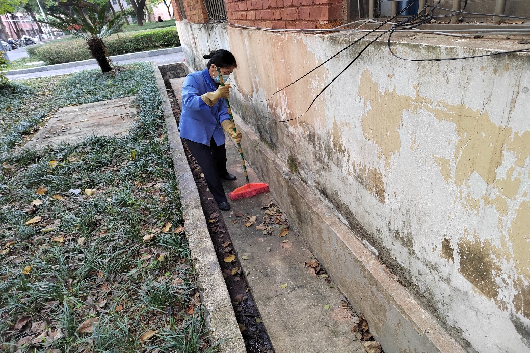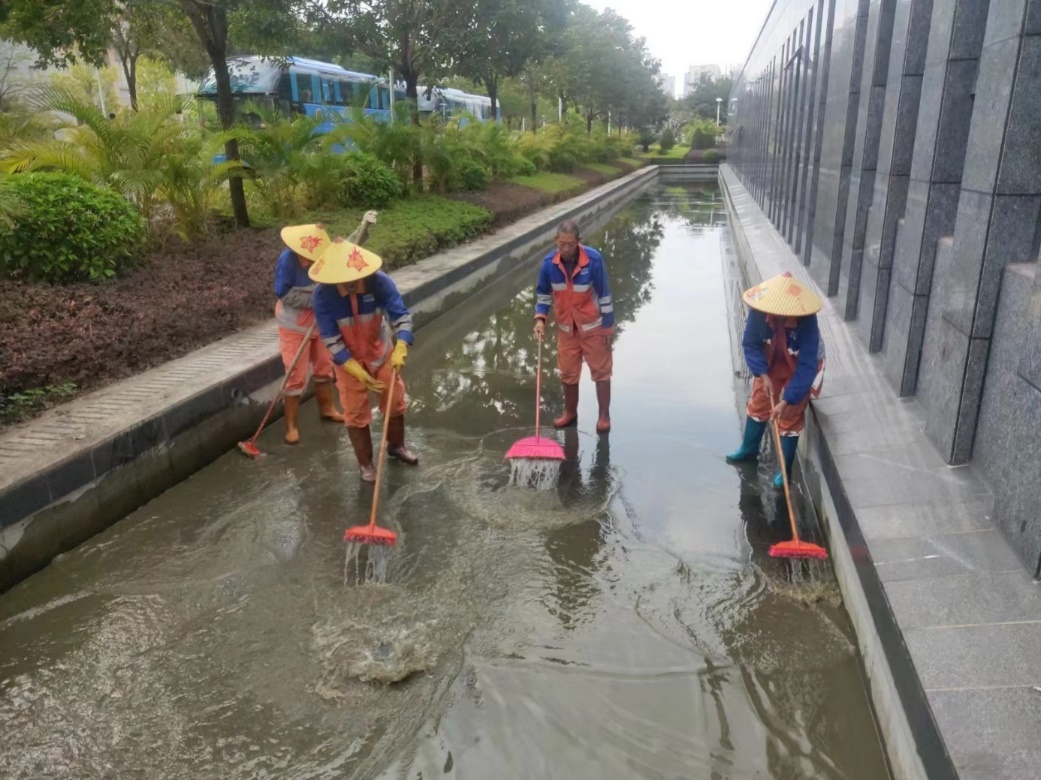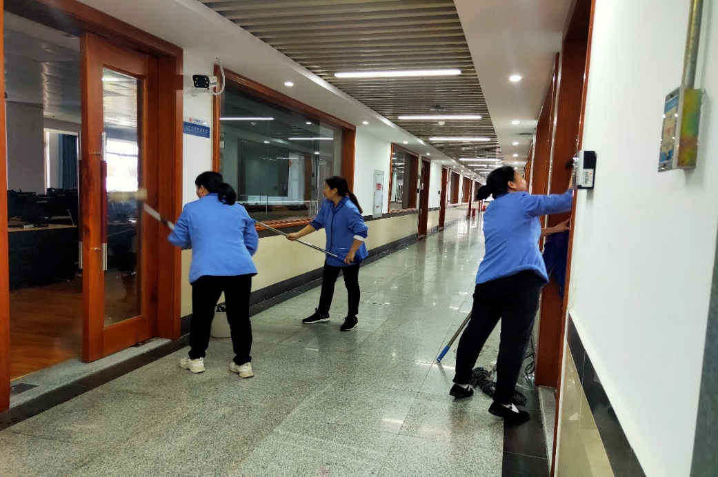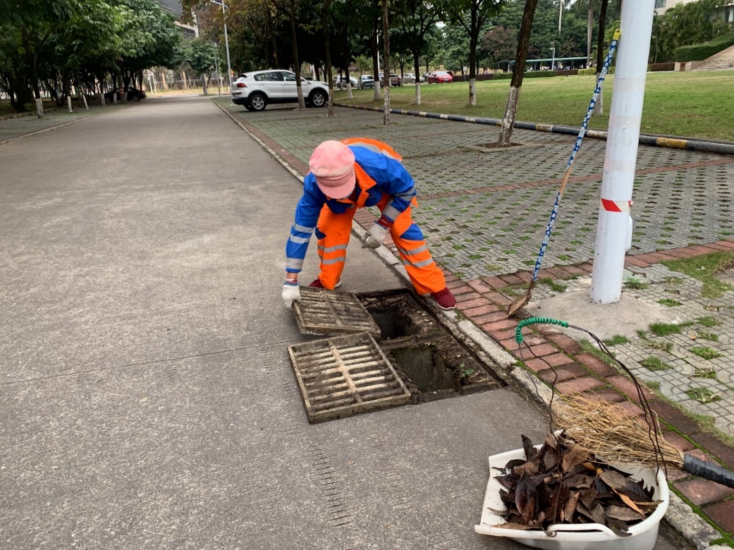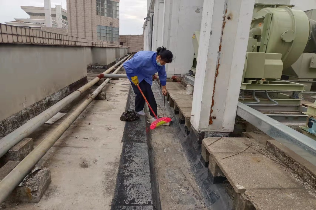 1.正常开展公共楼宇日常保洁服务工作。清理 39 栋公共楼宇外围排水设施内杂物及杂草 162 次;清理 32 栋楼宇天台的排水设施内淤泥及杂草 138 次;重点楼宇卫生保障 15 次,重要会议保障 16 次。