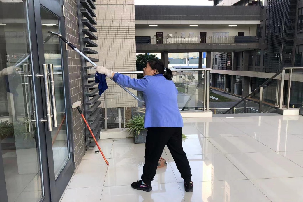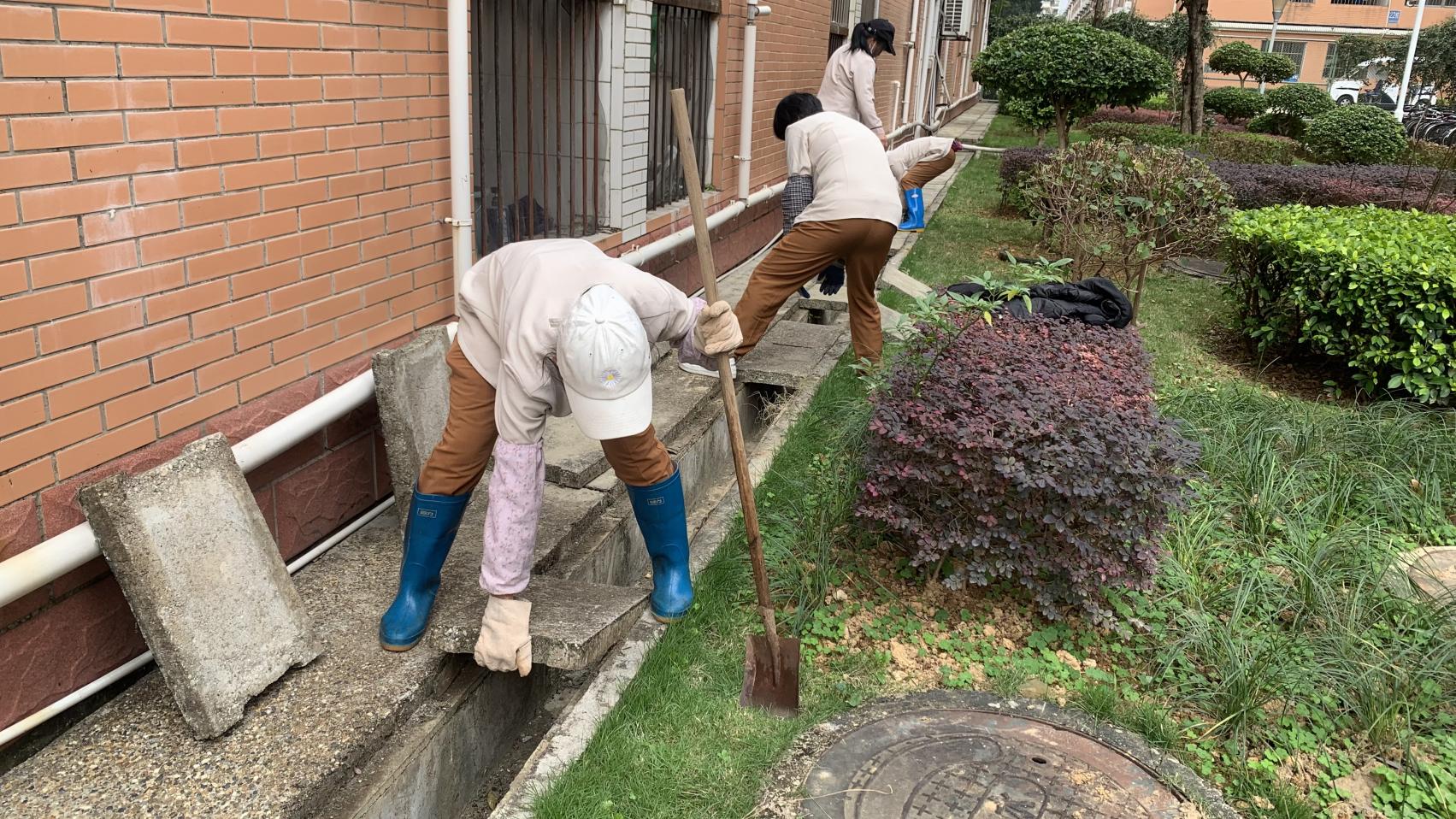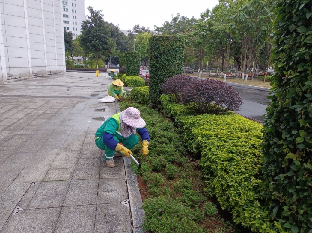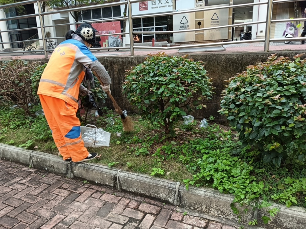 1.正常开展公共楼宇日常保洁服务工作。清理 39 栋公共楼宇外围排水设施内杂物及杂草 162 次;清理 32 栋楼宇天台的排水设施内淤泥及杂草 138 次;重点楼宇卫生保障 15 次,重要会议保障 16 次。