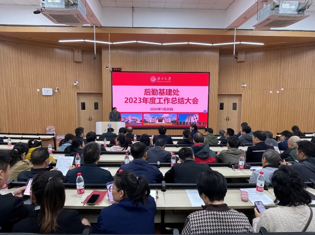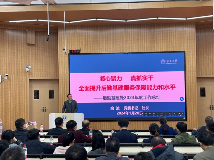 首先,余波党委书记、处长代表领导班子作太阳集团tyc1382023年度工作总结,总结太阳集团tyc1382023年度在党建业务双融合、公寓园区生活服务、教育教学公共服务保障、重大活动保障、水电运行与服务、设备维修服务、公共楼宇维修改造及重大项目推进等方面工作完成情况,凝练工作亮点及通报获得荣誉,并对2024年重点工作做了详细部署。余波肯定全体教职员工过去一年取得的成绩,并对每一位教职员工提出殷切期望:一是进一步增强工作责任心,提升“事事紧抓快干”的紧迫感,积极主动解决师生“急难愁盼怨”问题;二是围绕学校中心工作,进一步提高各业务办公室的协同联动,形成齐抓共管的工作格局;三是继续保持2023年团结一致、真抓实干、敢拼敢闯的势头,以久久为功的定力和韧劲推动后勤服务保障和校园基本建设工作高质量发展,全面助力学校“双一流”建设工作。