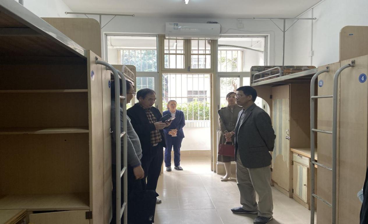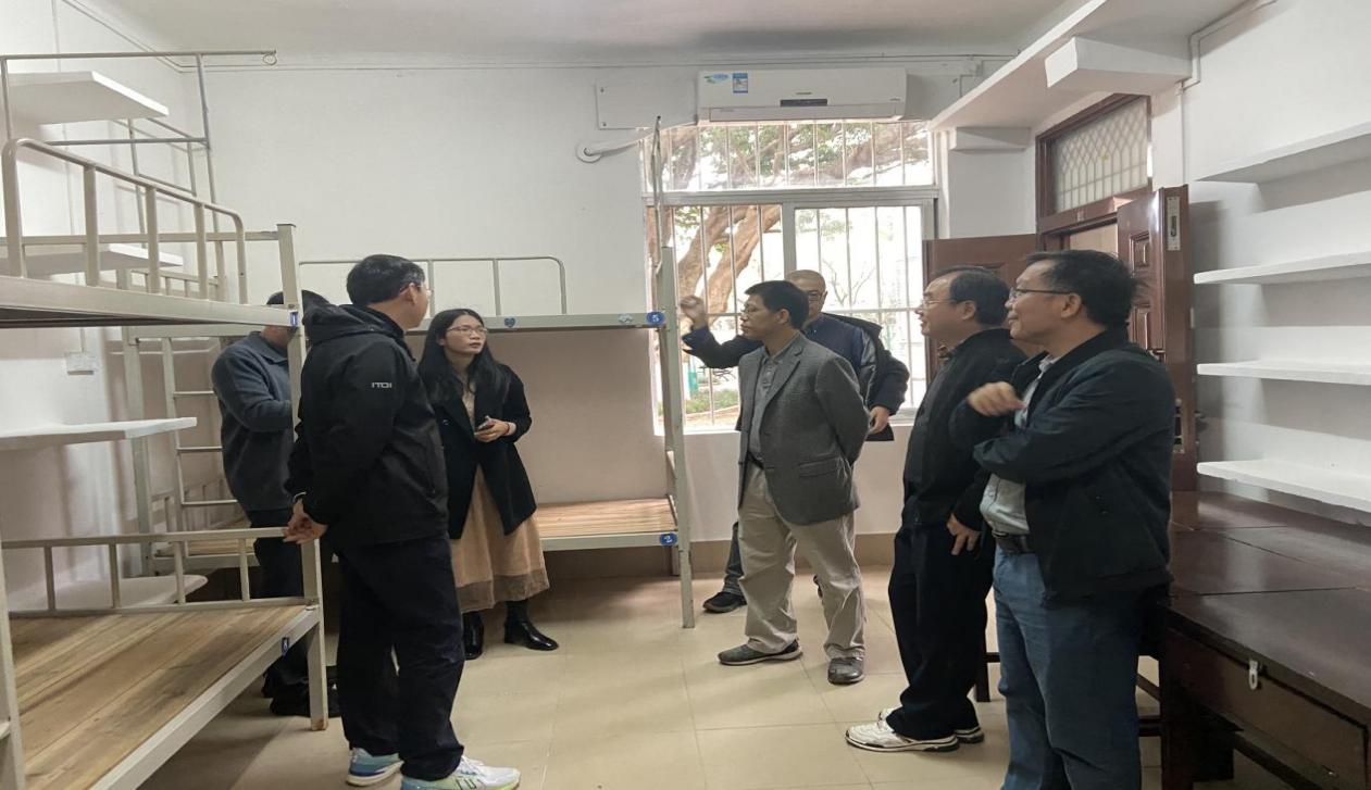 校领导带队调研学生宿舍床护栏加高成品效果情况