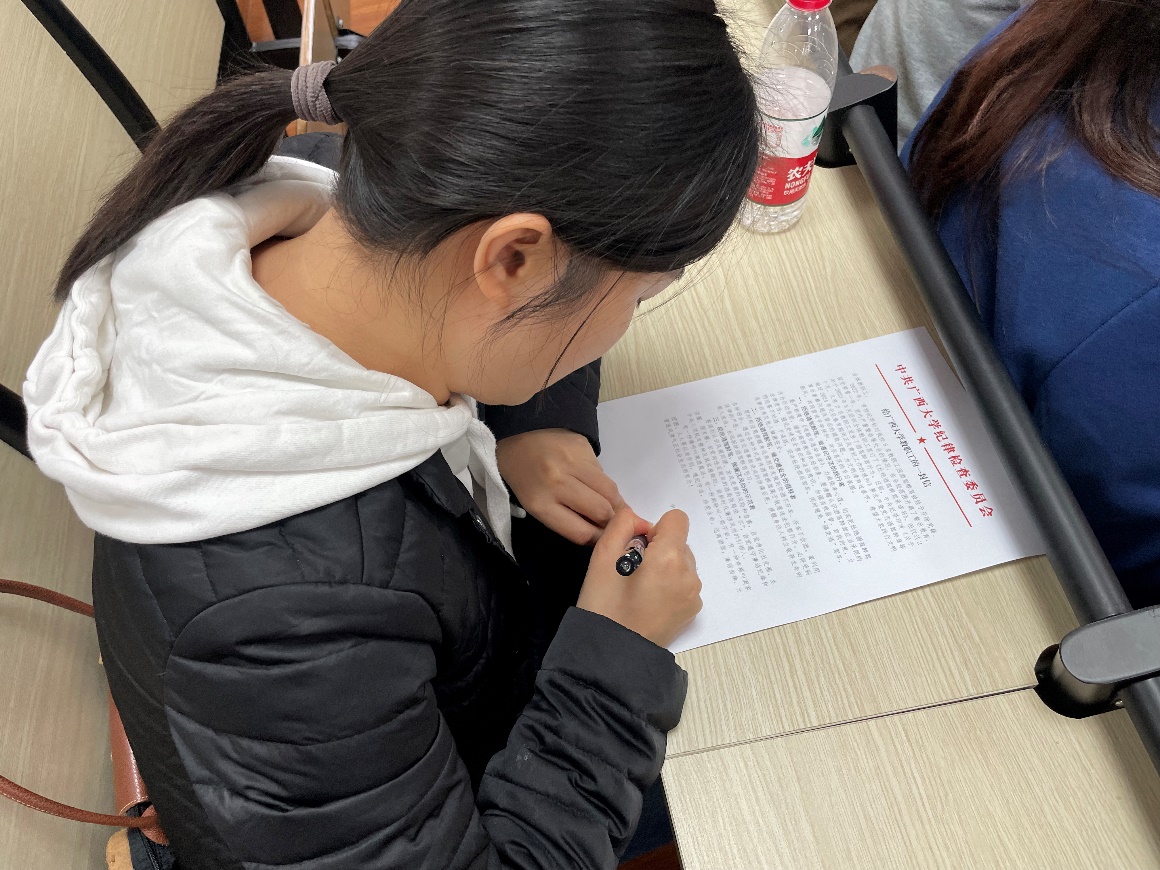 随后,太阳集团tyc138纪委书记袁荣卿组织开展了党员干部酒驾醉驾警示教育,会上全体教职员工观看党员酒驾醉驾警示教育片,处纪委书记袁荣卿还组织大家学习校纪委给太阳集团tyc138教职工的一封信,提醒全体教职员工拒绝酒驾醉驾,大家学习完后在信上签上名字,承诺“拒绝酒驾醉驾,做遵纪守法的践行者,做交通安全的倡导者,做廉洁风尚的示范者”。