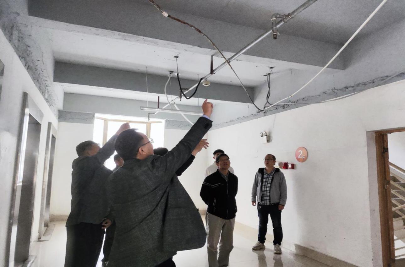 校领导带队调研学生公寓东16栋、27栋走廊吊顶情况