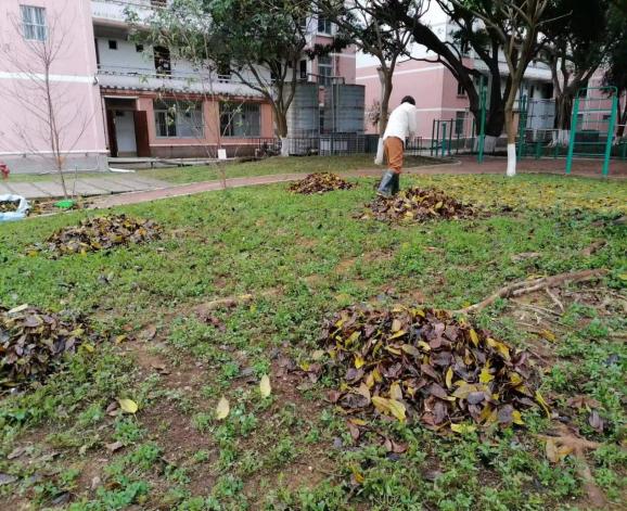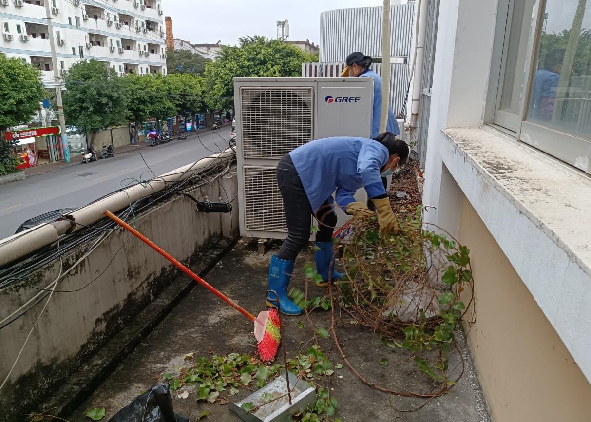 清理农发院阳台落叶杂草