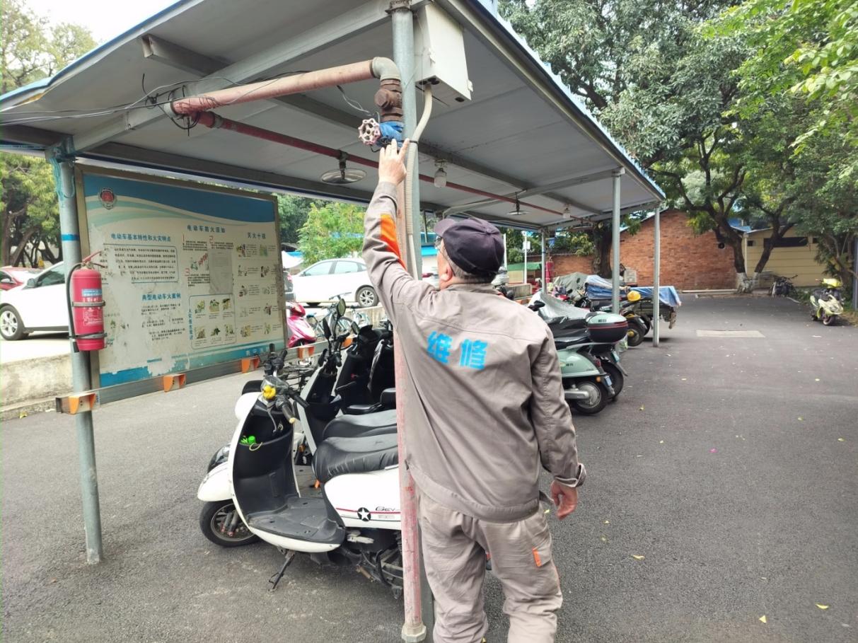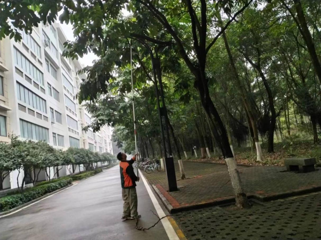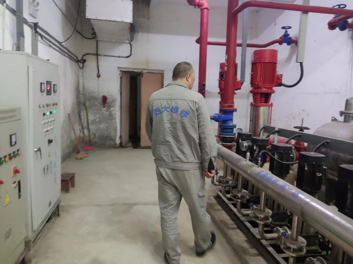 3.学生公寓利用假期期间疏通下水管道、对学生公寓园区公共设施进行日常维修,保障设施设备正常运转。在做好每天日常维修的同时,坚持对学生公寓183间电表房, 2个水泵房定期巡检。