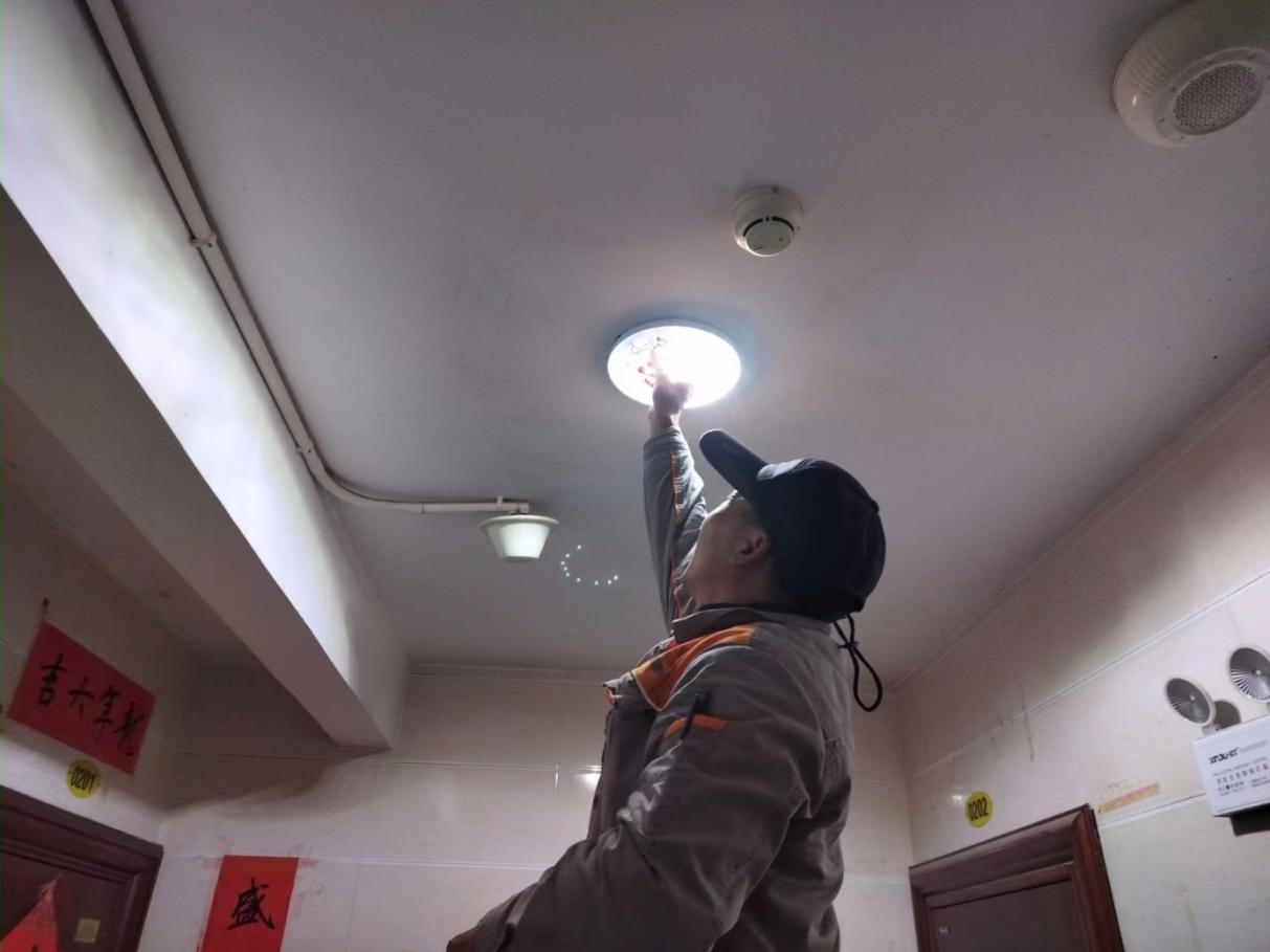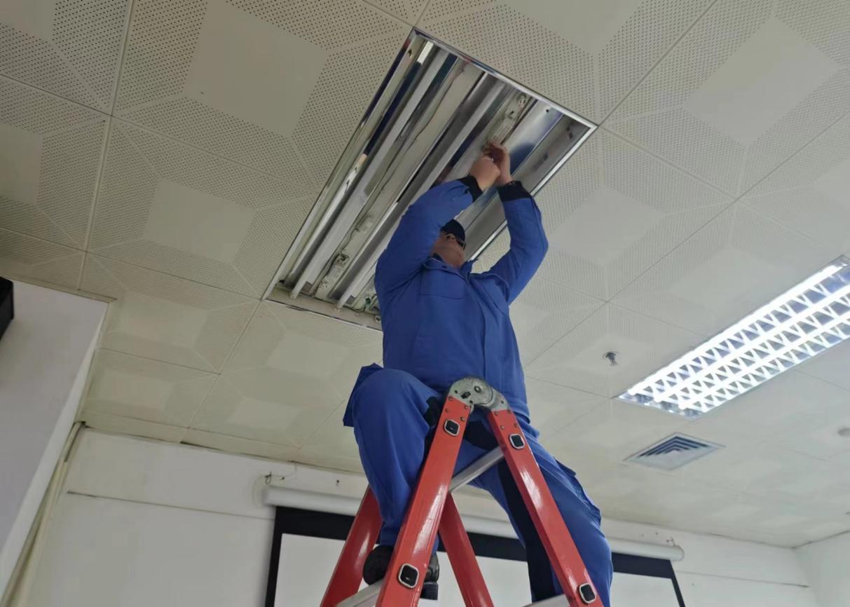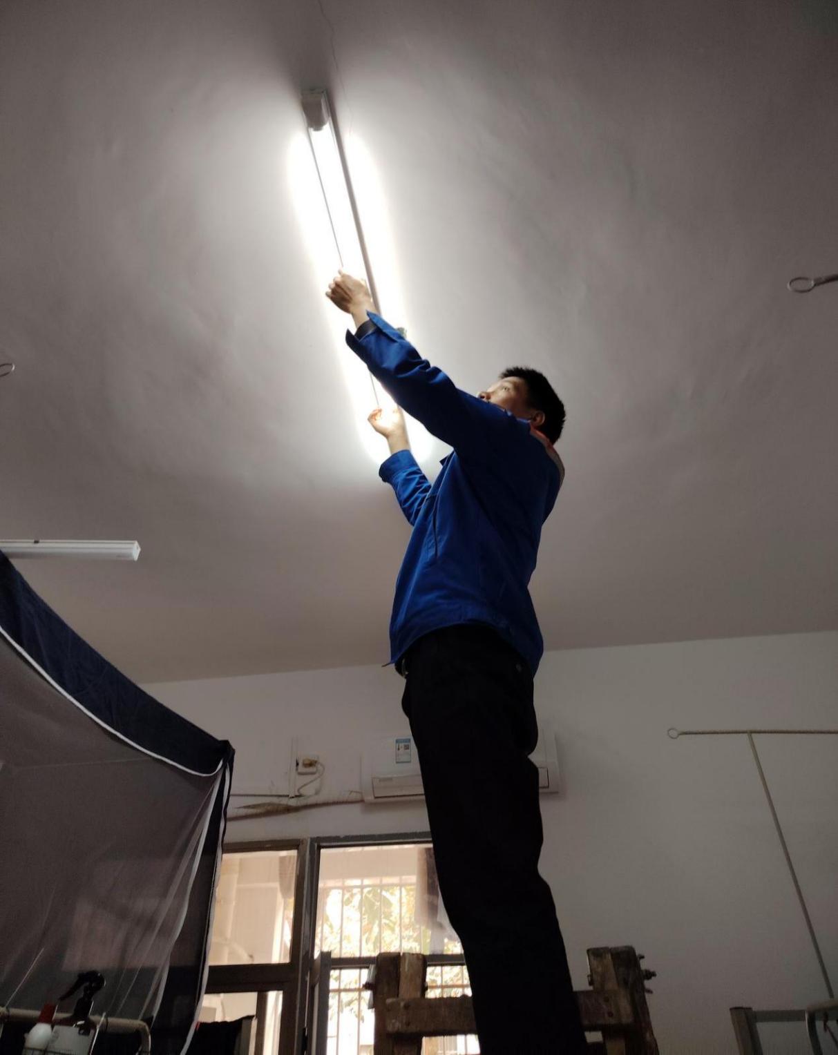 工作人员维修室内灯管
