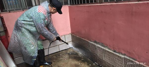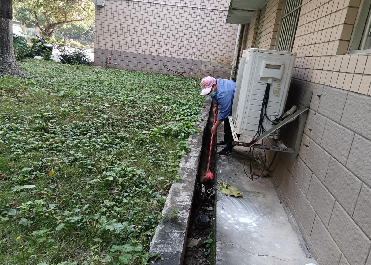 清理公共楼宇外围排水设施
