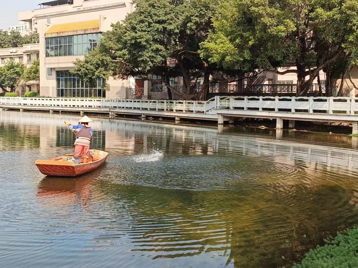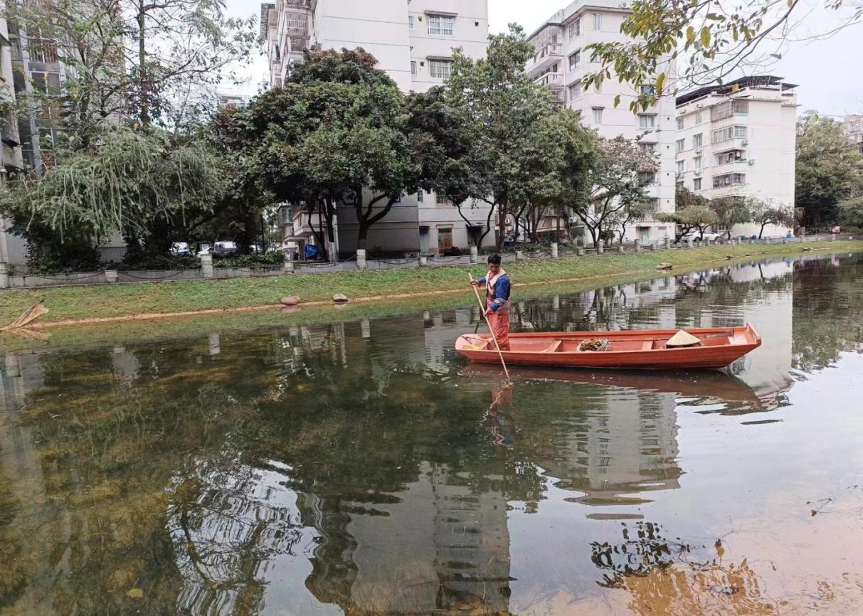 1. 绿化日常修剪养护工作:本月完成学生公寓园区绿化除杂草工作约9000平方米,修剪绿化带面积约4990平方米,绿化带消杀面积约8.3万平方米,冲洗路面及3米以下墙面约8735平方米。本月清理学生公寓水沟46条,长度约2200米,清理6个楼栋学生公寓天台的排水设施内淤泥共3次。