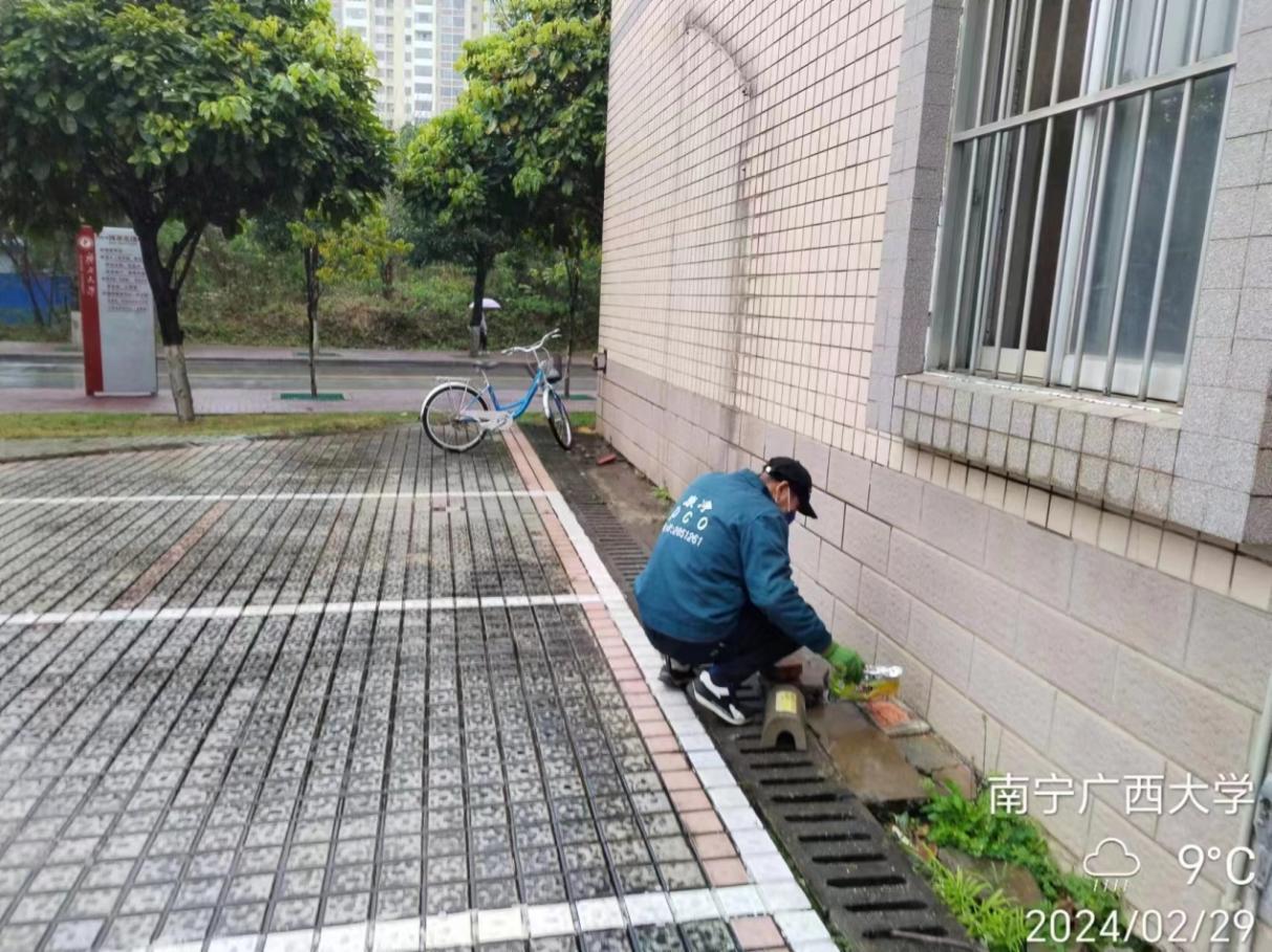 2.卫生保洁工作:2月份冲洗路面及3米以下墙面约8735平方米;清理学生公寓水沟46条,长度约2200米;清理6个楼栋学生公寓天台的排水设施内淤泥共3次;完成学生公寓公共区域4857个灯罩以及196个风扇清洗保洁工作。
