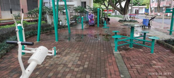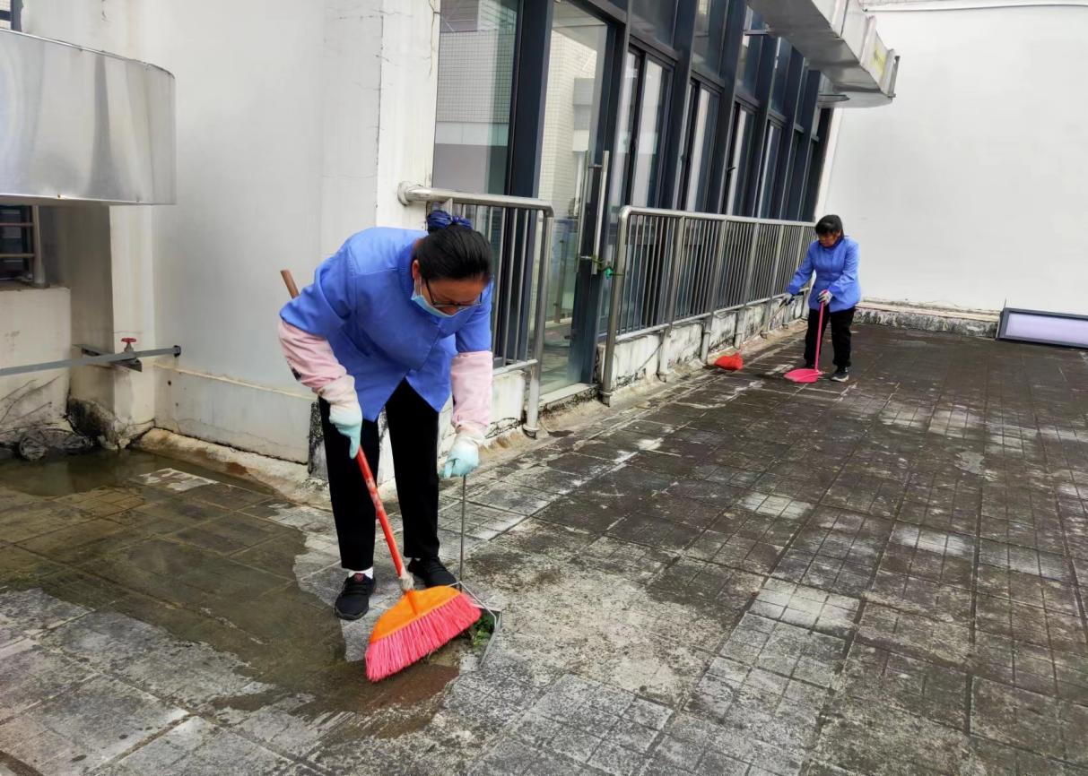 1.正常开展公共楼宇日常保洁服务工作。清理 39 栋公共楼宇外围排水设施内杂物及杂草 193 次;清理 40 栋楼宇天台的排水设施内淤泥及杂草 147 次;重点楼宇卫生保障 18 次,重要会议保障 4 次。