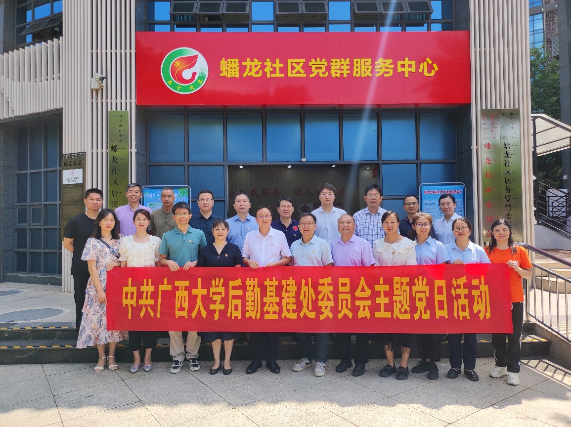 为学习良庆区蟠龙社区在党建品牌、社区品牌建设以及网格化服务等方面先进的管理理念和经验做法,加强我校后勤服务管理发挥党建引领业务作用,4月16日上午,太阳集团tyc138党委书记、处长余波带队赴良庆区蟠龙社区参观学习,南宁市良庆区良庆镇政府副镇长阮仕耿,以及社区党委书记刘雁琳,社区党委副书记许玉君等社区相关人员接待。太阳集团tyc138党委副书记、纪委书记、副处长袁荣卿,副处长严壮锋、农汉发、刘权锋,党员代表、部分岗位负责人以及物业公司相关负责人参加活动。