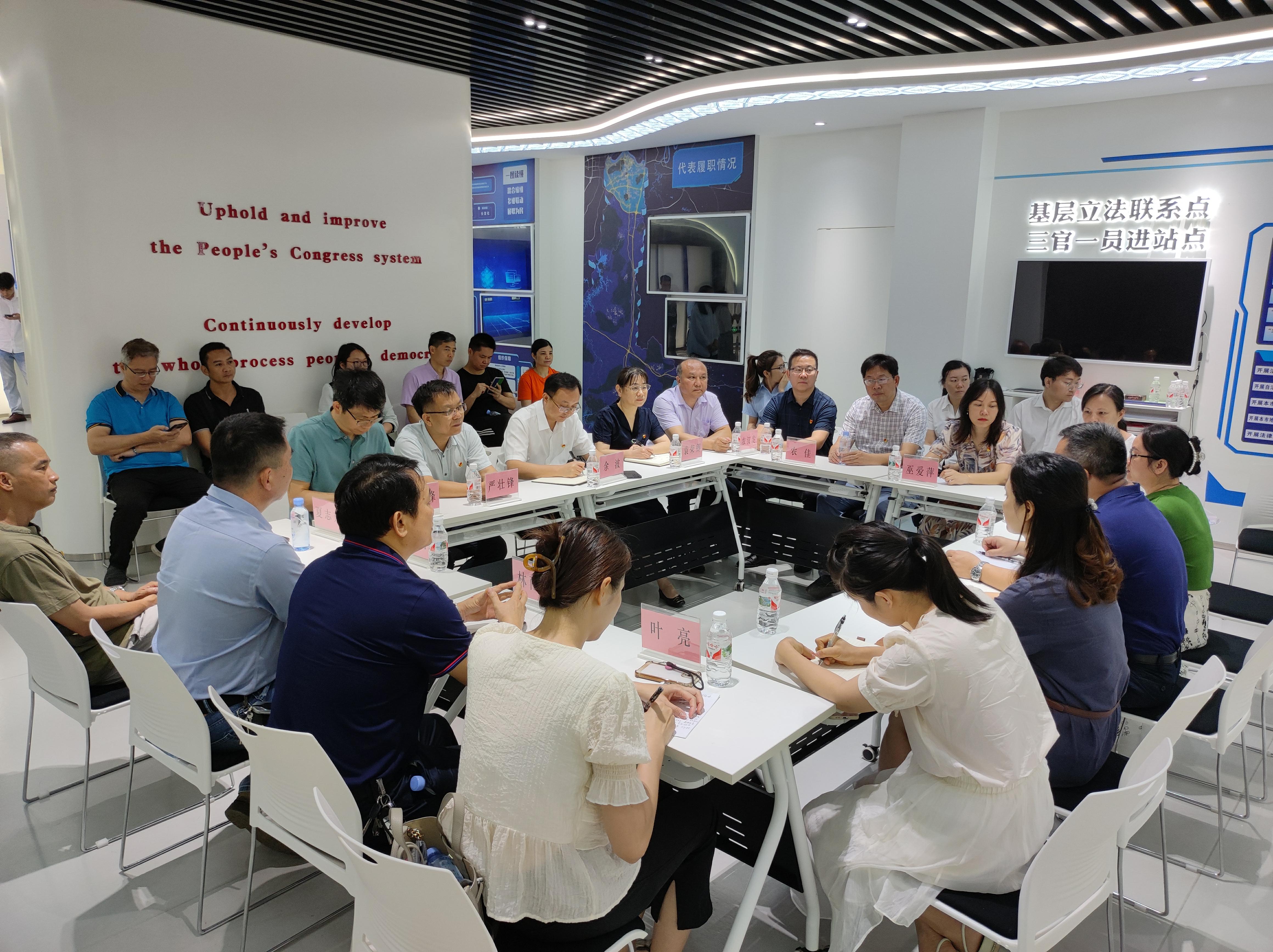 参观结束后,双方通过座谈会议进行深入交流,阮仕耿首先介绍了蟠龙社区基本情况、资金来源、人员配备及现阶段存在问题等,双方就网格治理模式、物业管理、园区文化建设、安全隐患排查、邻里矛盾排解、群众舆论引导、投诉处理及居民满意度提升等方面开展交流探讨。余波对南宁市良庆区良庆镇人民政府及蟠龙社区的热情接待表示感谢,对社区社会治理工作取得的成绩表示认可和赞扬,提出双方将充分利用各自的资源优势,加强交流与合作。