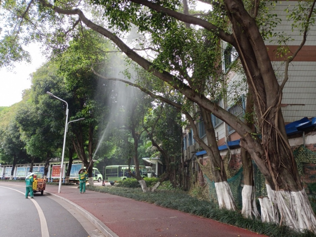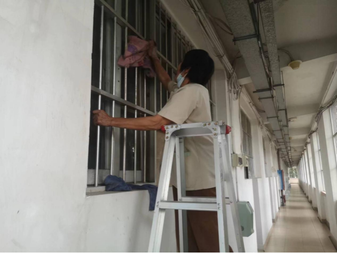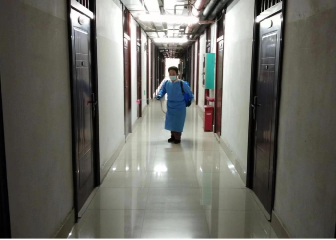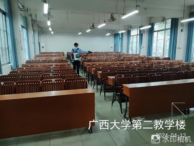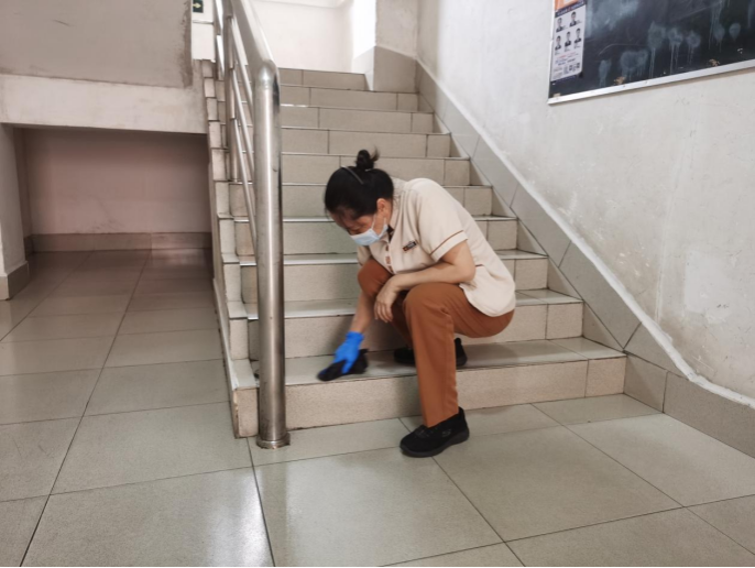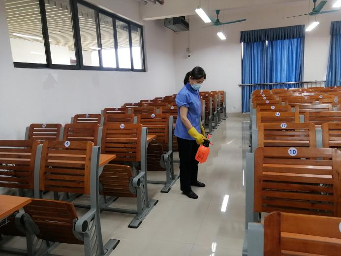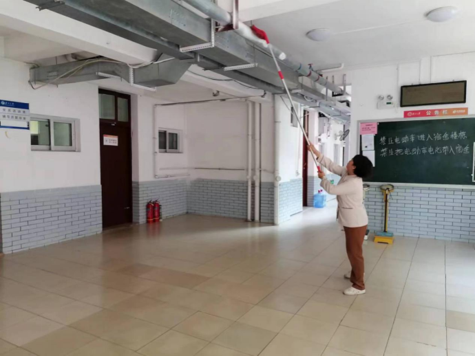 2.对公共教学楼宇的楼梯、走廊、门把手、课桌椅、水龙头、楼梯扶手、电梯间及按钮等高频接触表面进行重点杀菌消毒 2325 次。