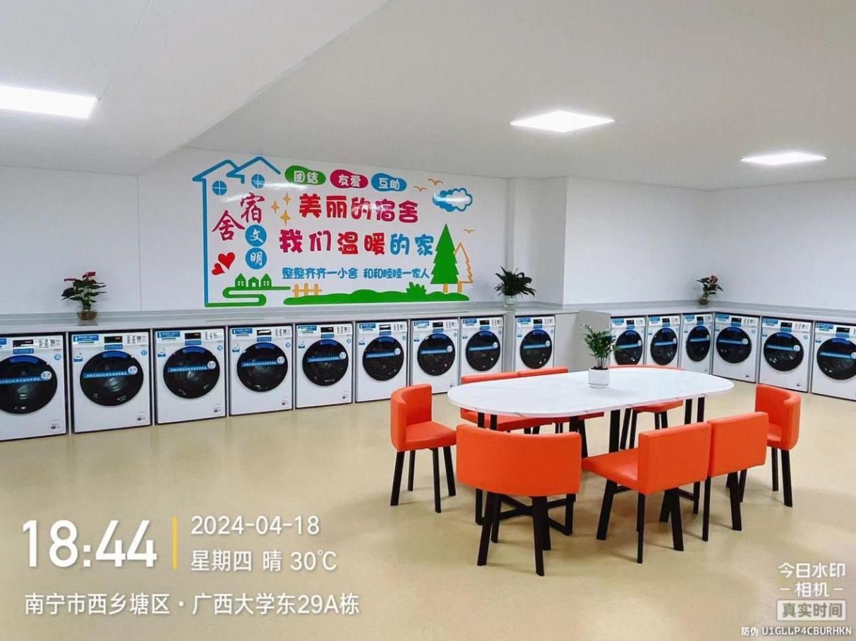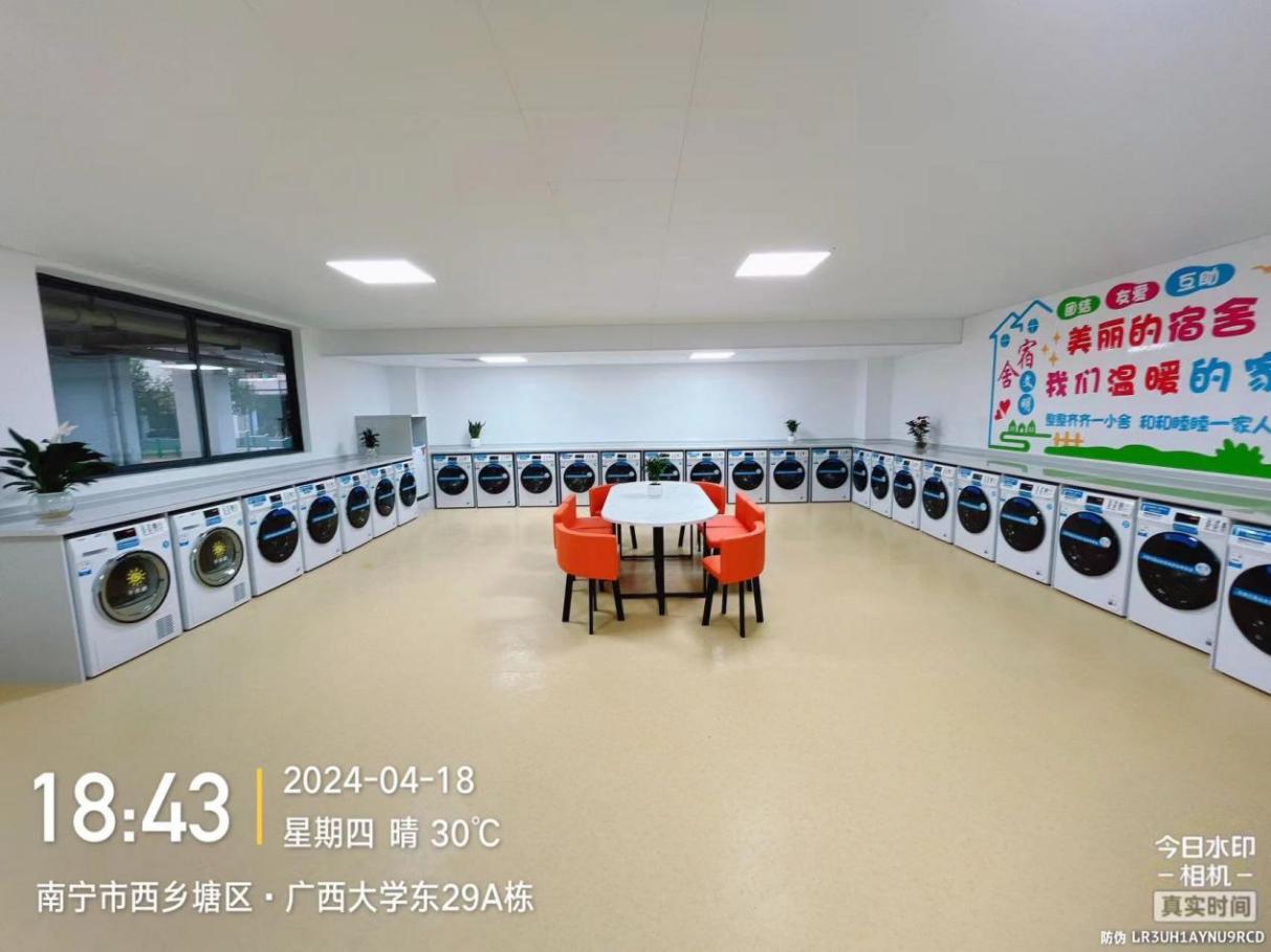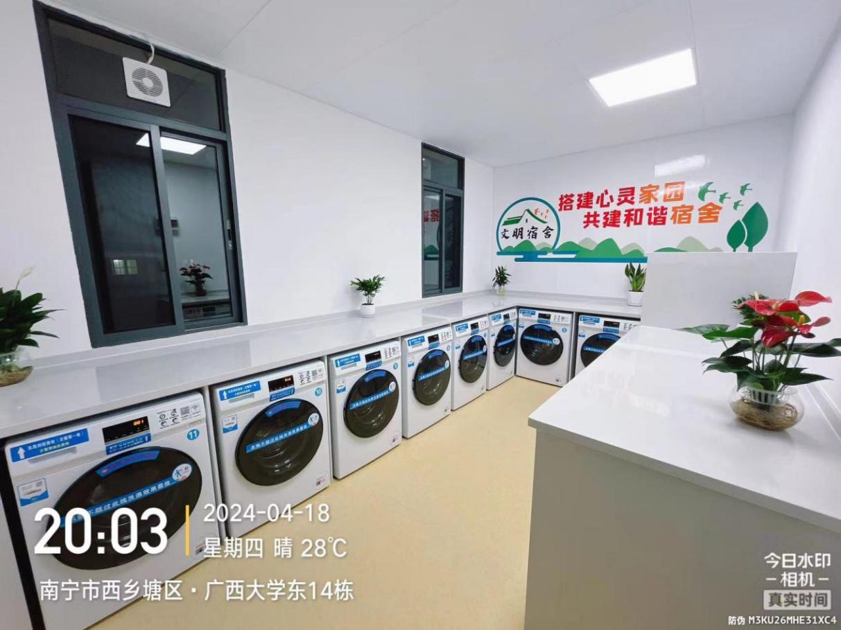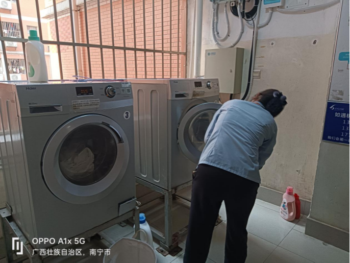 4月29日,校领导带队视察学生公寓新建的洗衣机样品房