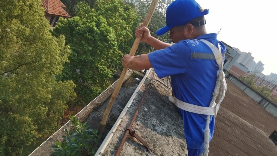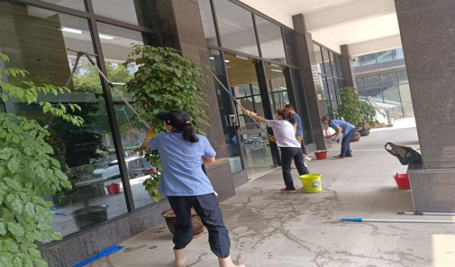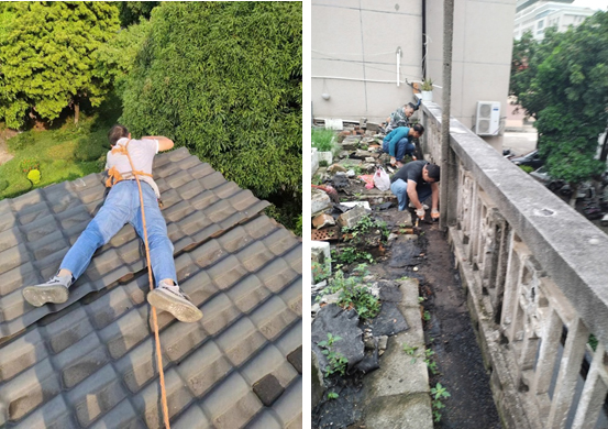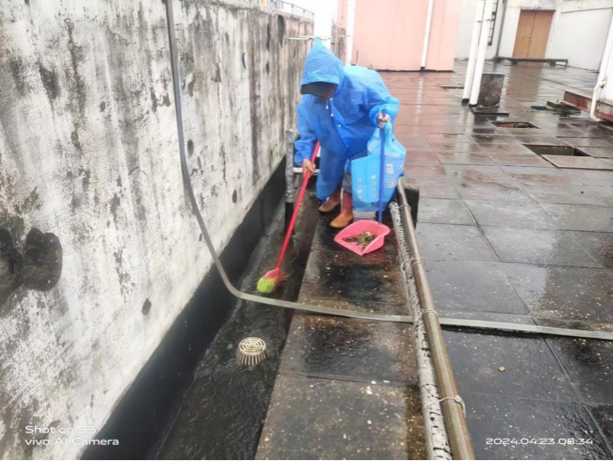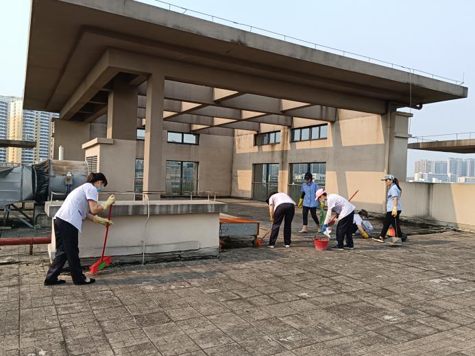 1.正常开展公共楼宇日常保洁服务工作。清理43栋公共楼宇外围排水设施189次;清理 42 栋楼宇天台的排水设施157次;重点楼宇卫生保障18次,重要会议保障19次。