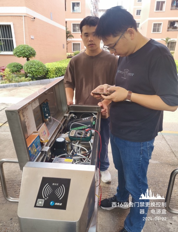 4月8日,校领导带队到学生公寓查看公共洗涤服务项目建设实施进度