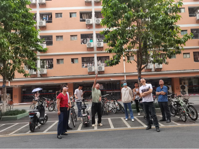 处领导带队现场踏勘西21-23的外墙瓷砖空鼓脱落情况