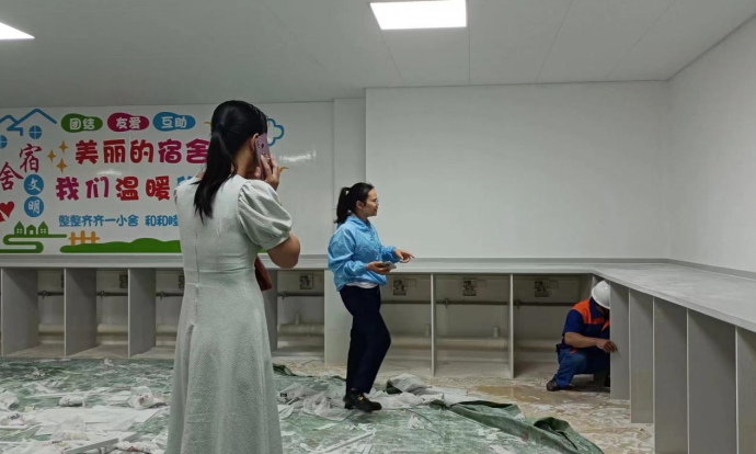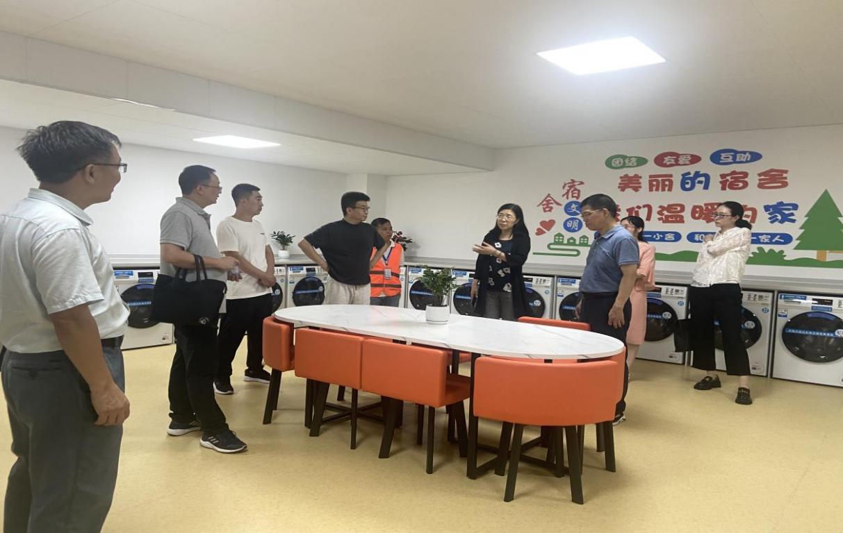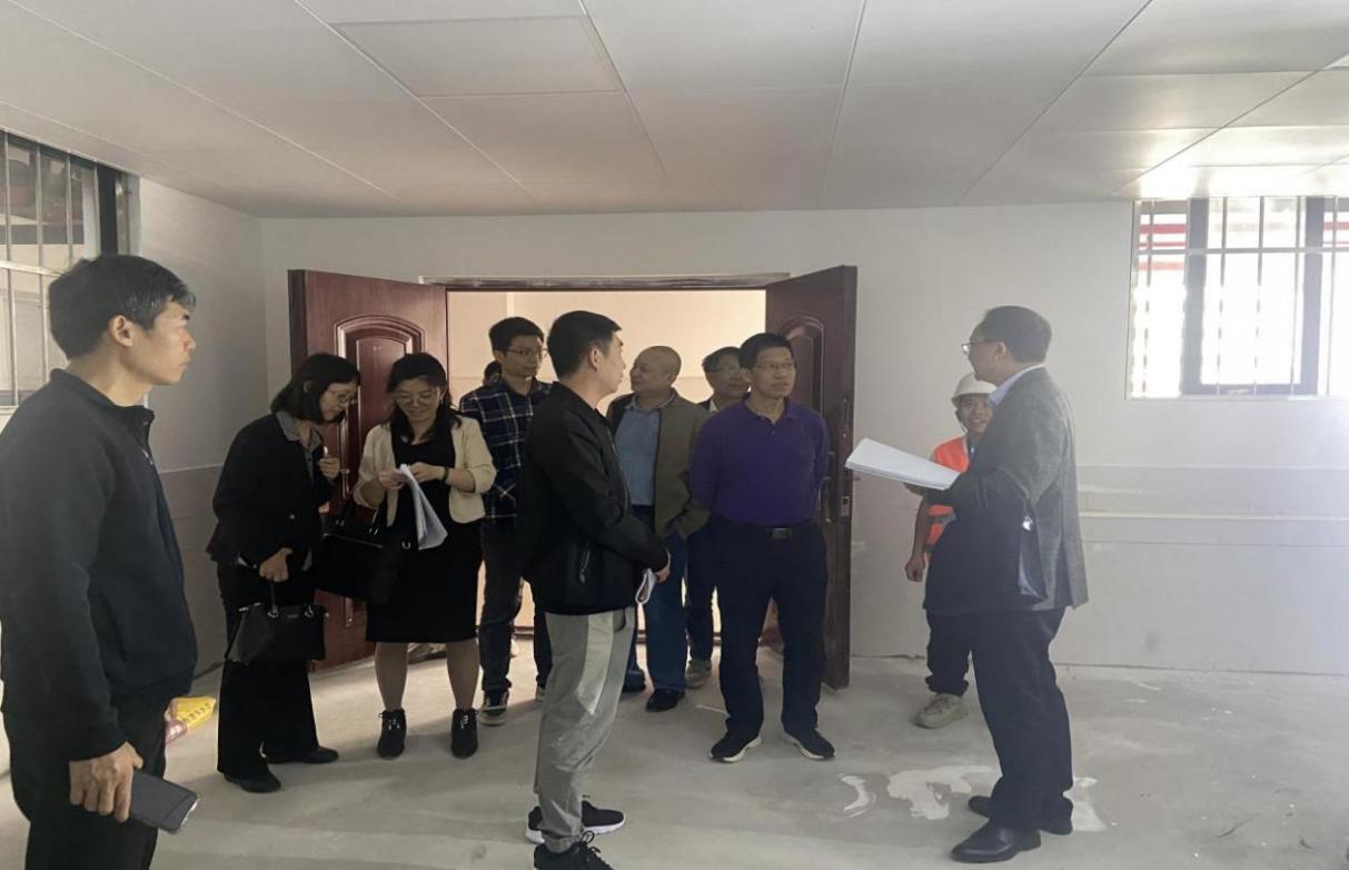 4月8日,校领导带队查看学生公寓洗衣样板房施工进度