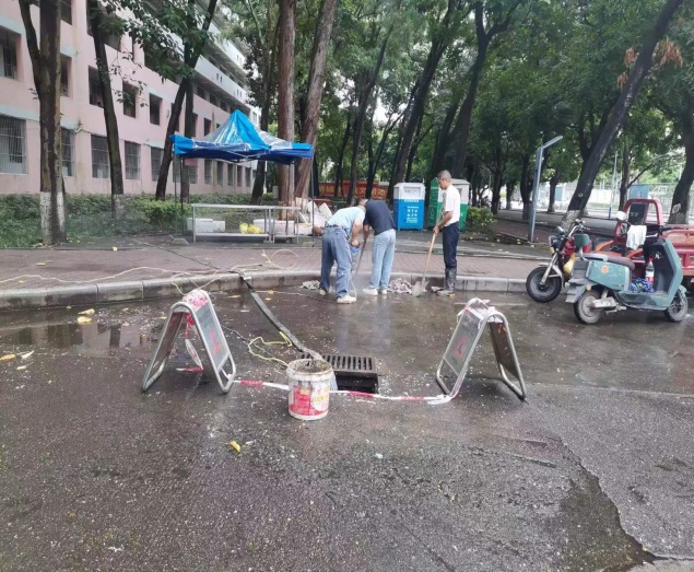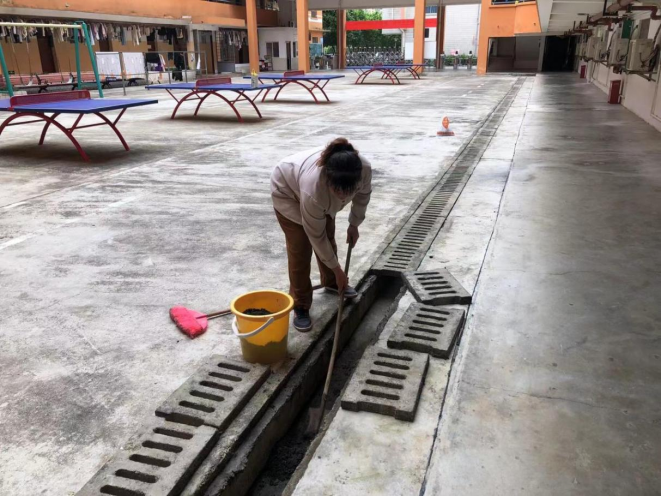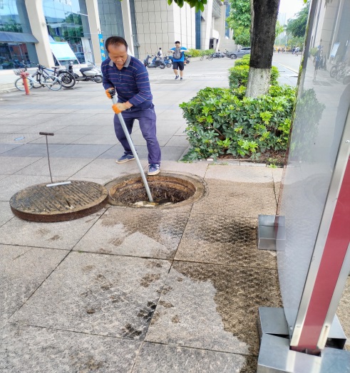 清理公共楼宇外围排水设施