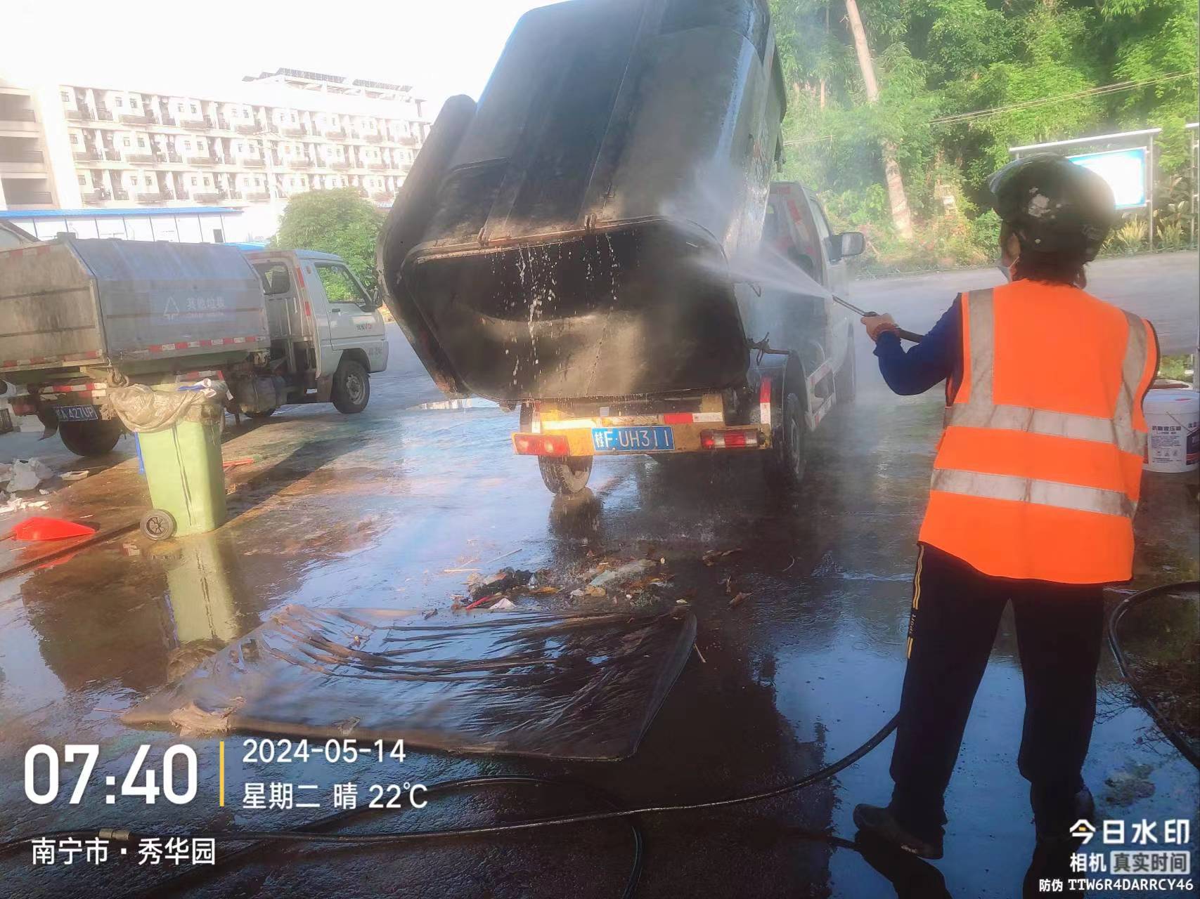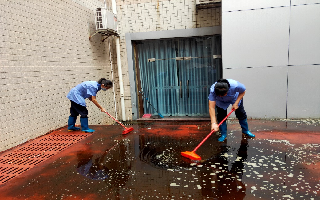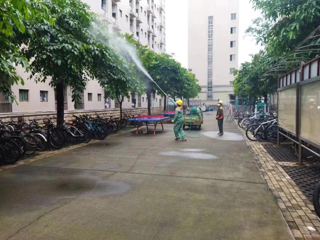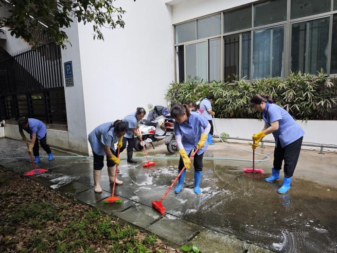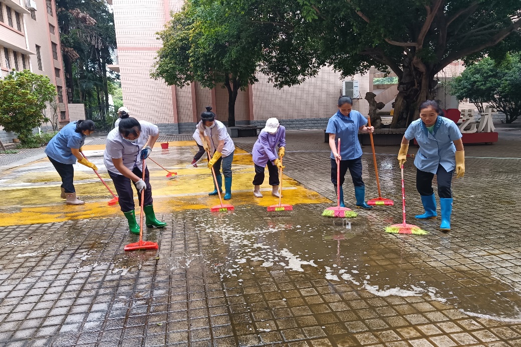 冲洗艺术学院内庭地面污渍