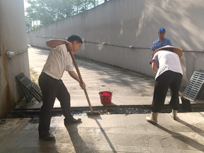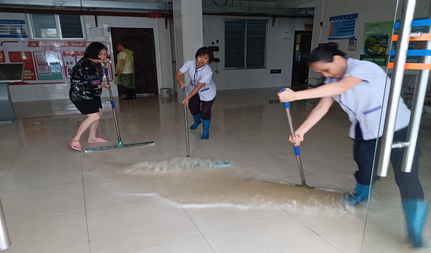 清理培佳园办公楼楼内积水