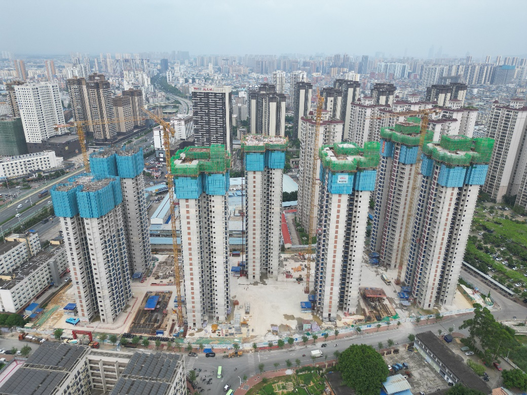 ① 1#、2#、3#住宅楼已完成所有混凝土浇筑和砖墙的砌筑,已通过主体结构验收,阳台栏杆已全部安装完,内墙抹灰完成2~10层;