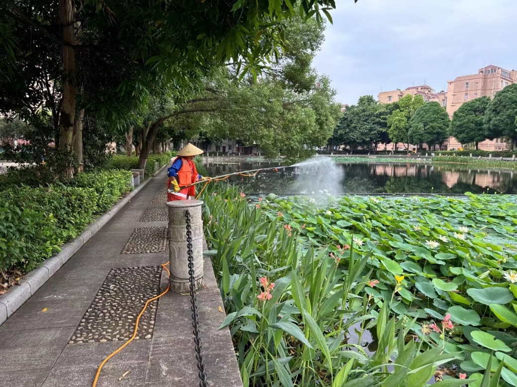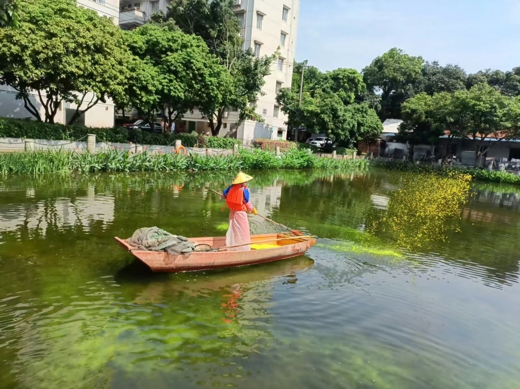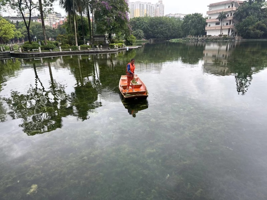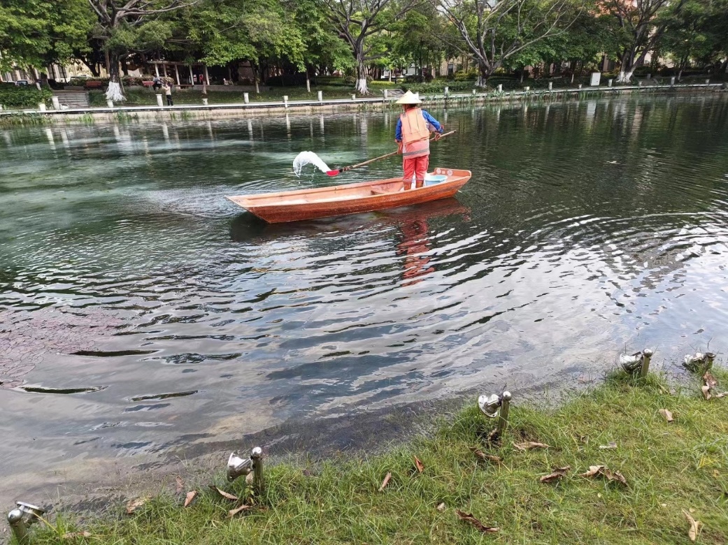 1.正常开展公共楼宇日常保洁服务工作。清理 43 栋公共楼宇外围排水设施内杂物及杂草 262 次;清理 42 栋楼宇天台的排水设施内淤泥及杂草 218 次;重点楼宇卫生保障 29 次,重要会议保障 20 次。