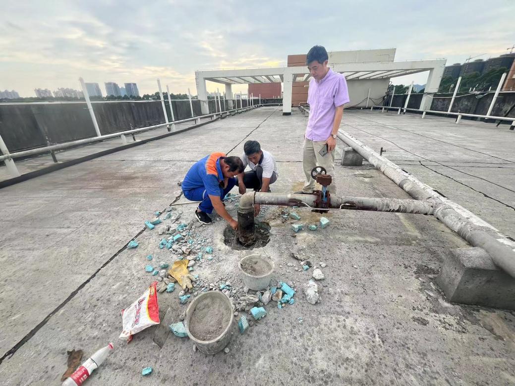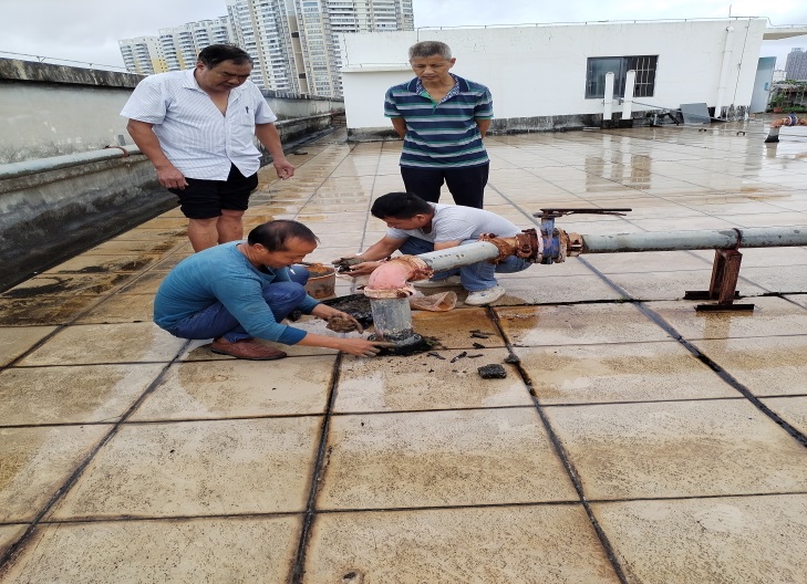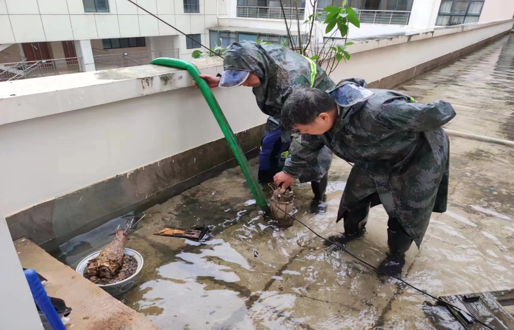 处理君武馆楼顶积水