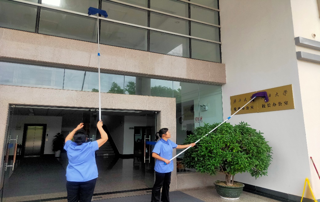清洁校办墙体积灰