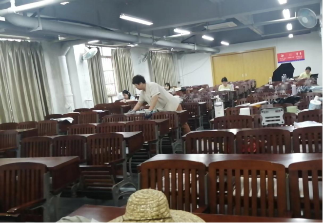 对公共教室进行消杀工作