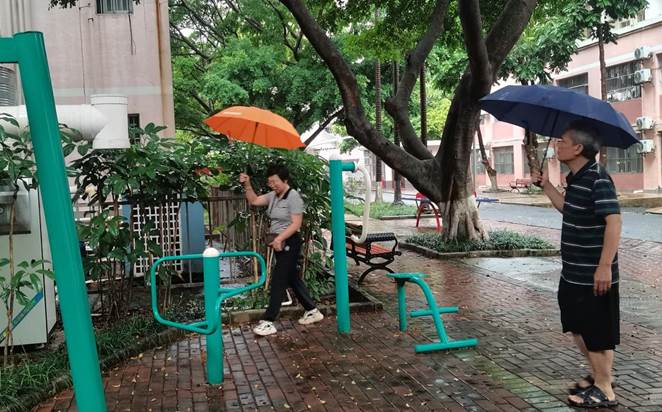 工作人员雨天安全巡查